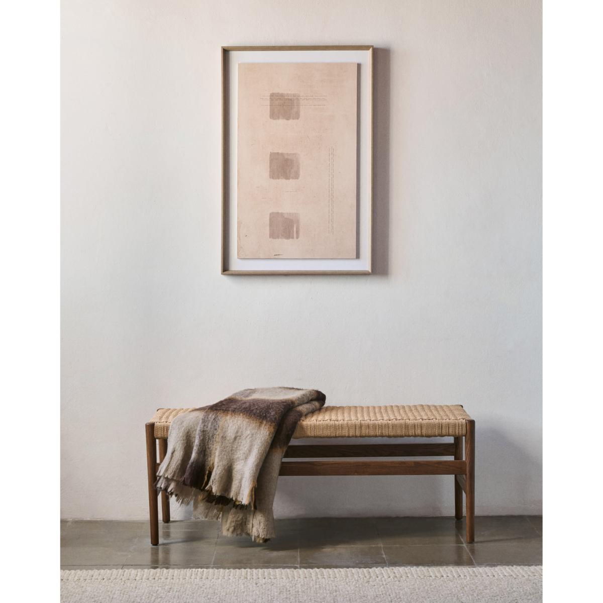 I love this bench for its mix of warm walnut-toned oak and a natural rope-cord seat - it brings texture without feeling heavy. It suits Scandi, mid-century or modern farmhouse schemes and works equally well in an entrance hall, at the foot of a bed or tucked under a console. For styling, layer a neutral linen cushion or small sheepskin throw to soften the weave, then keep accessories simple - perhaps a slim ceramic vase or a neat stack of books - so the bench’s clean lines remain the focus.