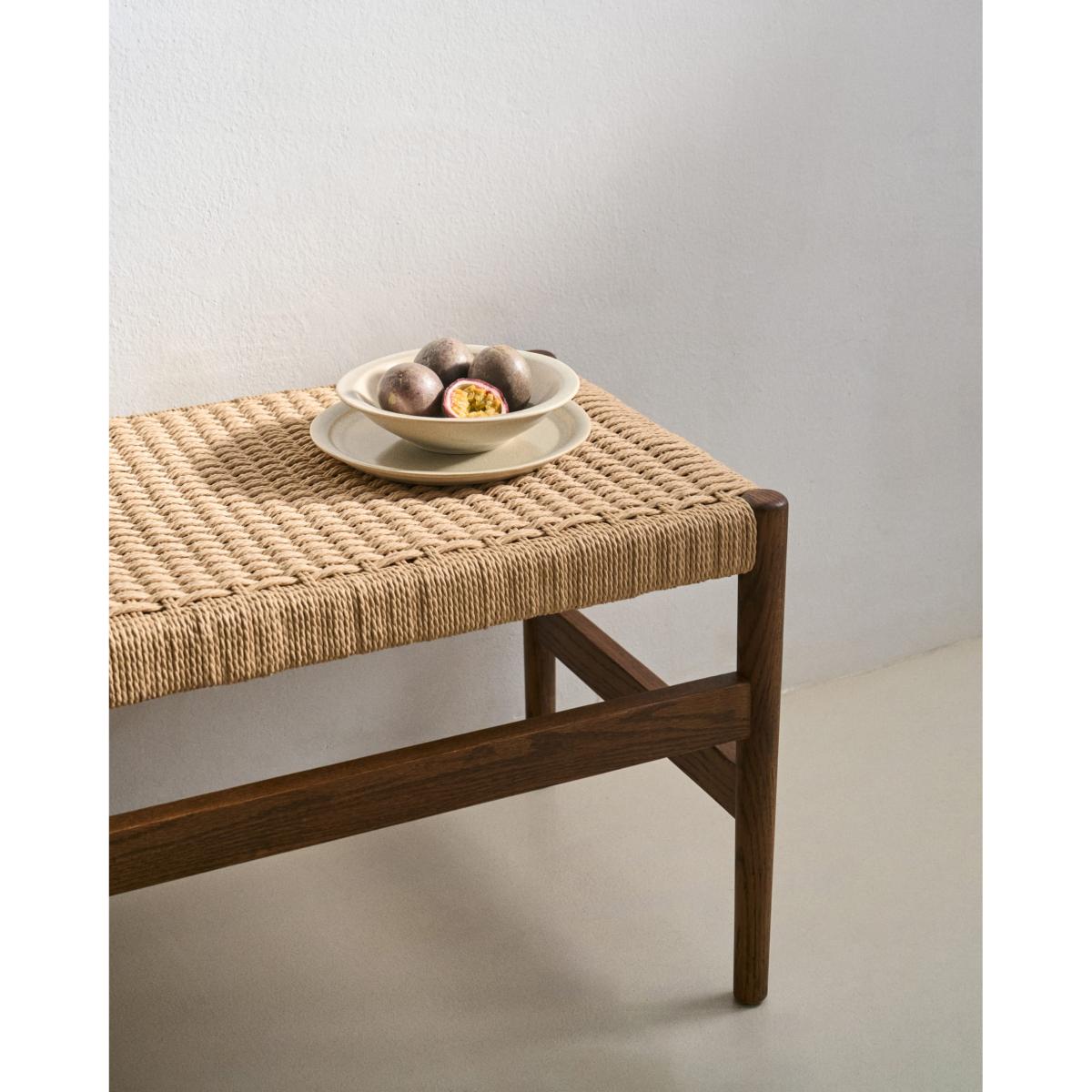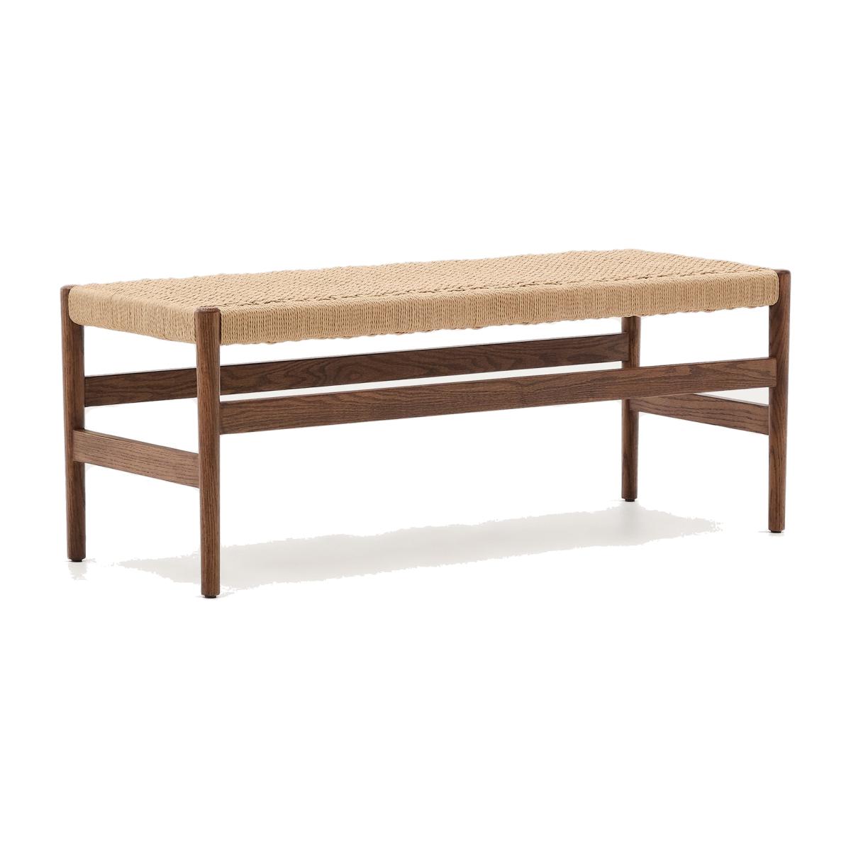 Zaide bench made of solid oak wood in a walnut finish and rope cord seat, 120 cm, 100% FSC