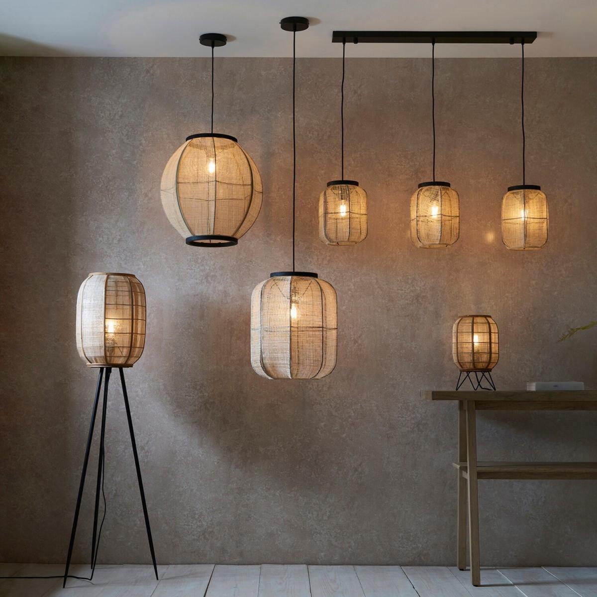 Take your interiors back to nature with this handmade wood and natural linen collection a linear pendant perfect for above dining table or breakfast bar. Other family items available.