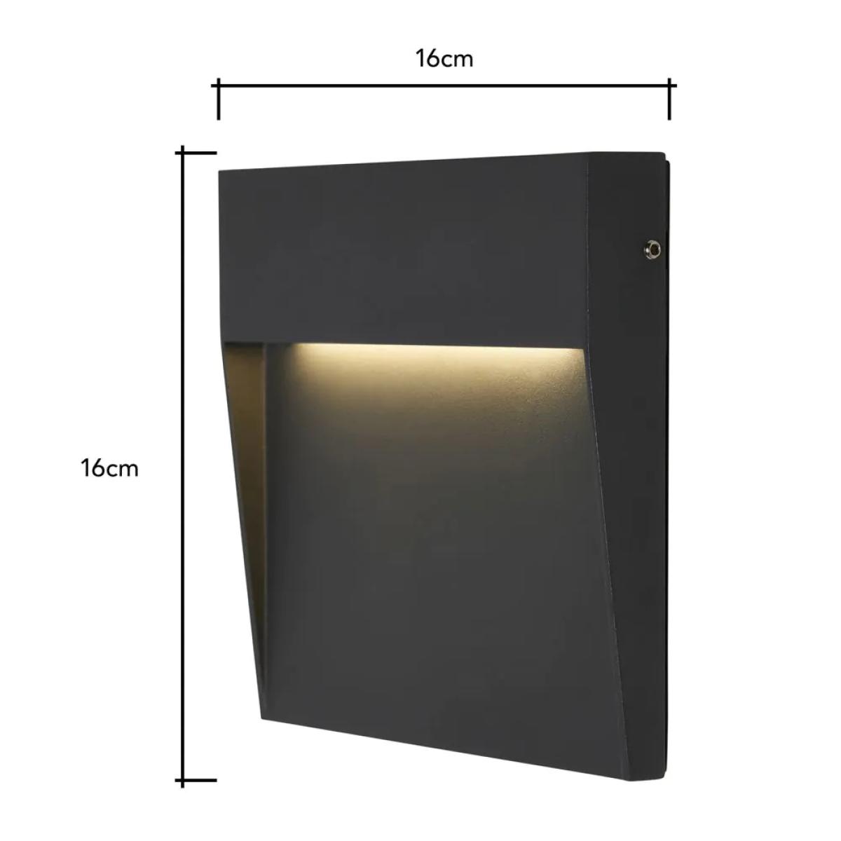 Enhance your outdoor lighting with the bold Zak Outdoor LED 16cm Square Wall Light. Its compact size provides subtle illumination, while the anthracite finish adds a sleek, modern look. Designed for outdoor use, the IP54 rating ensures it performs well in all weather conditions.
