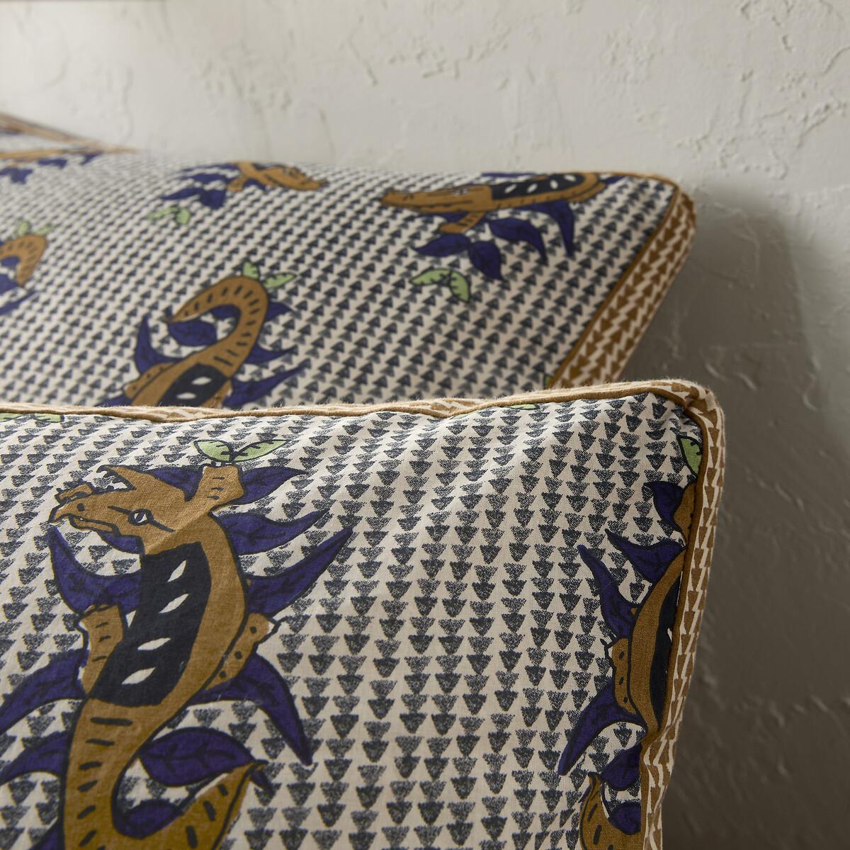 In a graphic style, with details that play with contrasts, the Zakari printed duvet cover features a crocodile pattern enhanced by a printed added band, like a geometric frieze. Bed linen in very soft 100% cotton, a creation by La Redoute Interiors. The washed cotton has been delicately bleached during its manufacture. Soft, supple and comfortable, it softens over time. Its slightly wrinkled appearance is incredibly on-trend, and it does not require ironing. Product Details • 100% cotton, 115g/m2 • Contains 50% recycled cotton • Washed cotton • 144 thread count • Print front and back • Straight buttoned hem Match this item with the rest of the bedding in the range for a stylish bedroom. And you can mix and match it with different colours and styles from our other bedding ranges when you want to change things up and create your own unique look. Care Advice • Machine washable at 40°CDimensions • 140 x 150cm: Single • 140 x 200cm: Single • 160 x 210cm : Double • 200 x 200cm: Double • Recycled cotton. Using recycled cotton is all about conserving resources and reducing waste. • OEKO-TEX® Standard 100. Standard 100 certification by OEKO-TEX® tests textile products for harmful substances via an independent, international label.