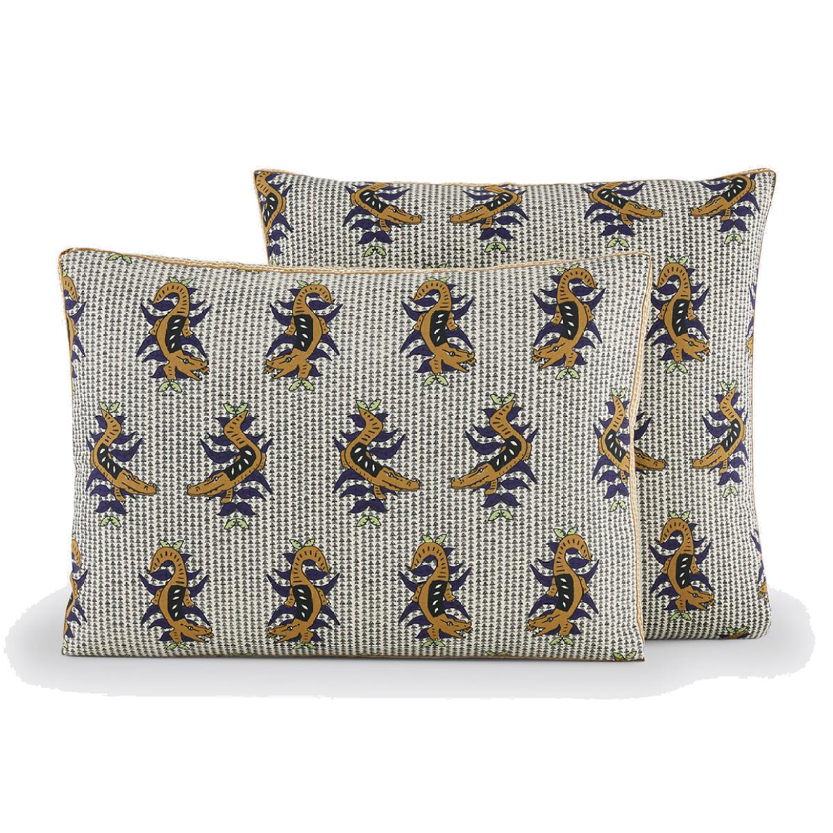 The Zakari washed cotton printed pillowcase displays a crocodile pattern on a graphic background for a contrasting and playful design. Bed linen in very soft 100% cotton, a creation by La Redoute Interiors. The washed cotton has been delicately bleached during its manufacture. Soft, supple and comfortable, it softens over time. Its slightly wrinkled appearance is incredibly on-trend, and it does not require ironing. Product Details • 100% cotton, 115g/m2 • Contains 50% recycled cotton • Washed cotton • Print front and back • 144 thread count. Match this item with the rest of the bedding in the range for a stylish bedroom. And you can mix and match it with different colours and styles from our other bedding ranges when you want to change things up and create your own unique look. Care Advice • Machine washable at 40°CDimensions • 50 x 70cm: Rectangular pillowcase • 63 x 63cm: Square pillowcase • 65 x 100cm: Rectangular pillowcase • Recycled cotton. Using recycled cotton is all about conserving resources and reducing waste. • OEKO-TEX® Standard 100. Standard 100 certification by OEKO-TEX® tests textile products for harmful substances via an independent, international label.