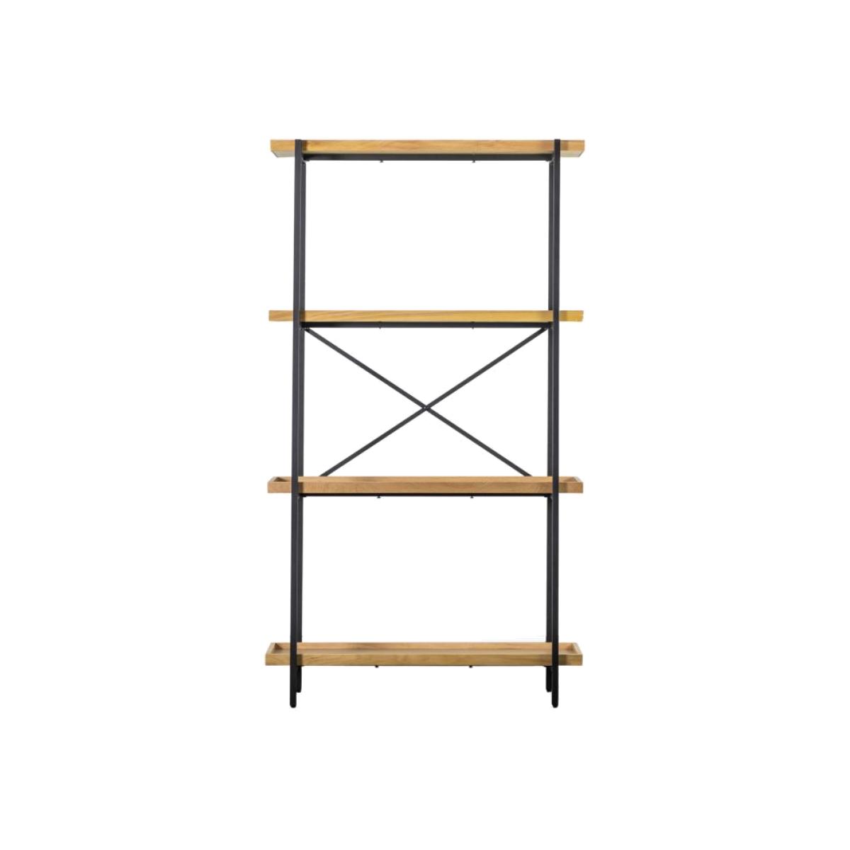 Offering a stunning contemporary look, this large open display unit combines matt black metal with oak. The shelves are tray-style with oak veneer tops and solid oak surrounds. Matching pieces are available. It is part of our Packed-Flat Design Project, offering easy delivery to any room in any property, whilst reducing the packaging needed. Easy assembly is required, but all the tools needed are supplied. Material:Oak Veneer. Colour/Finish: Natural.
