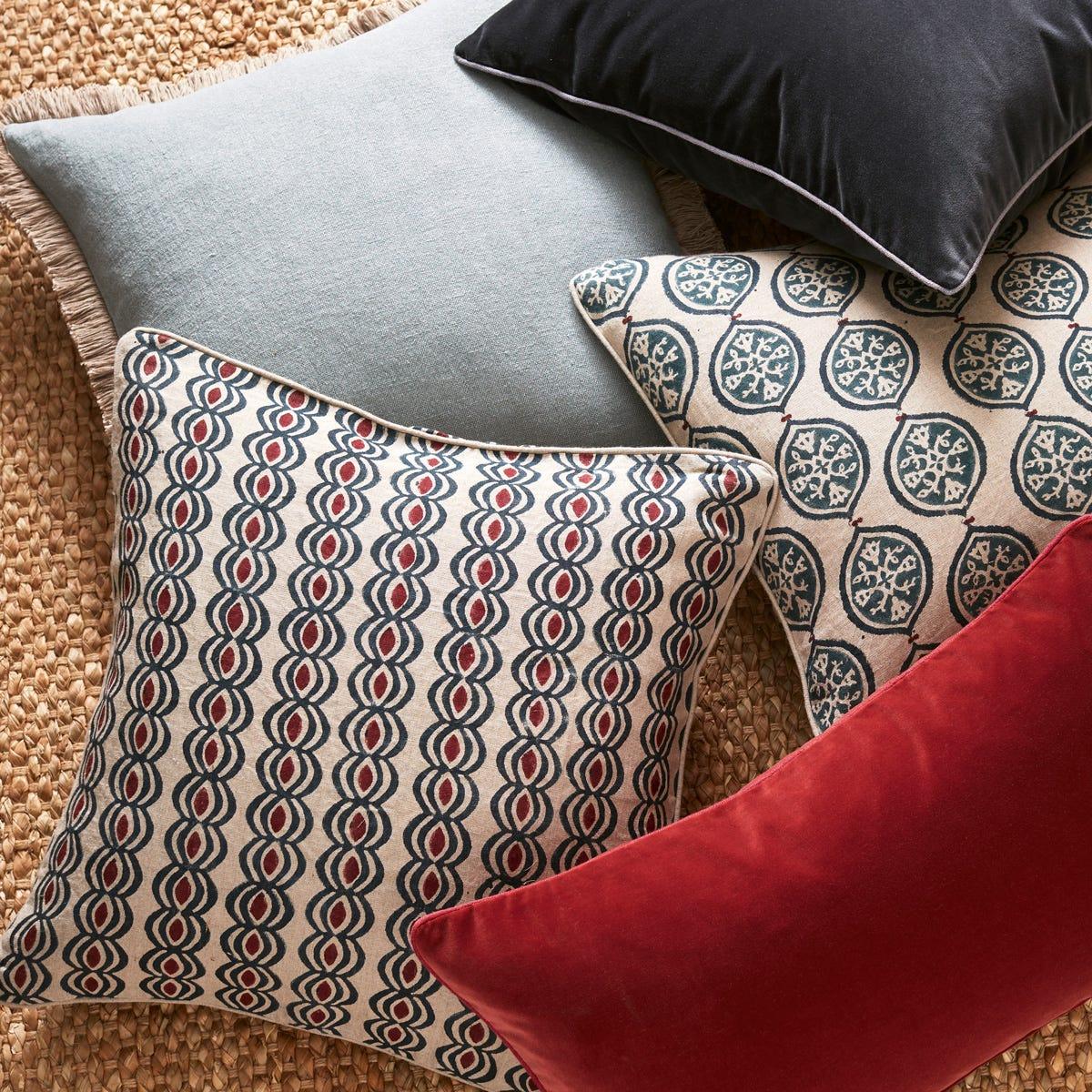 I love this cushion cover for its bold combination of petrol and red, which makes it a versatile statement piece. It works particularly well in contemporary or eclectic interiors, adding a pop of colour and visual interest to neutral sofas or armchairs. For styling tips, try pairing it with textured fabrics like linen or wool for added depth, or layer it with complementary cushions in muted tones to keep the look balanced. It’s a practical choice for bringing colour into a living space without overwhelming the overall aesthetic, making it an easy way to refresh your decor.