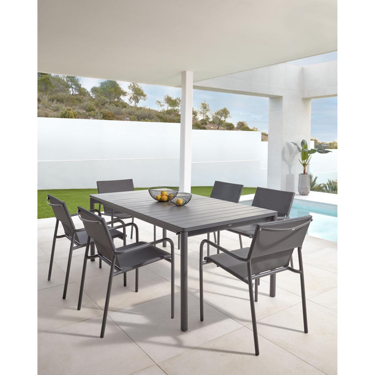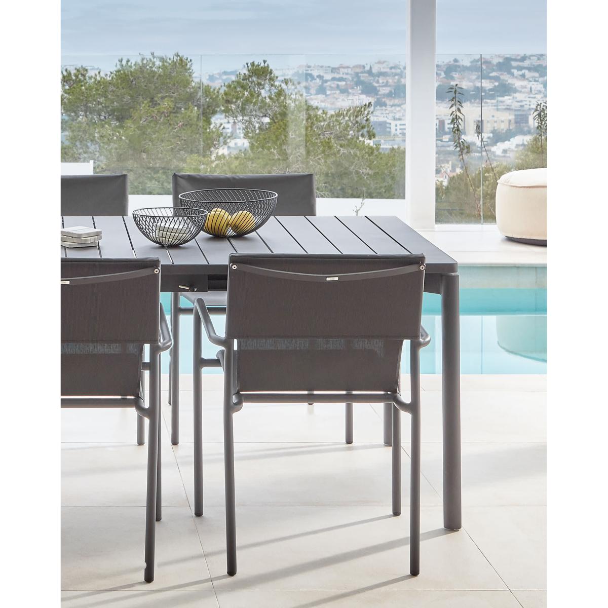 Zaltana stackable outdoor chair in aluminium with a matt dark grey painted finish