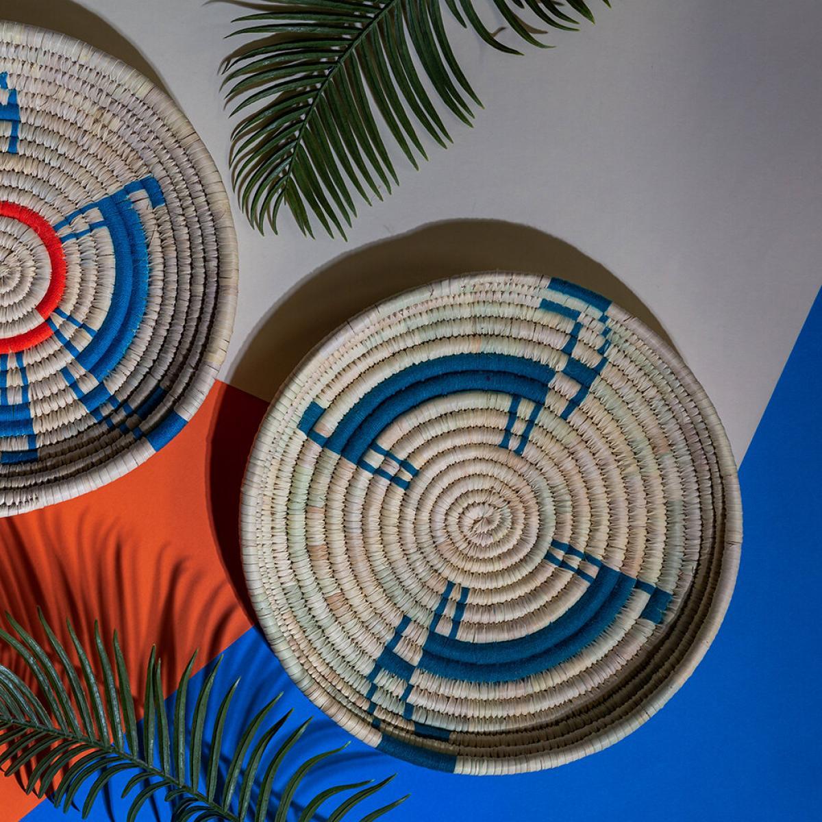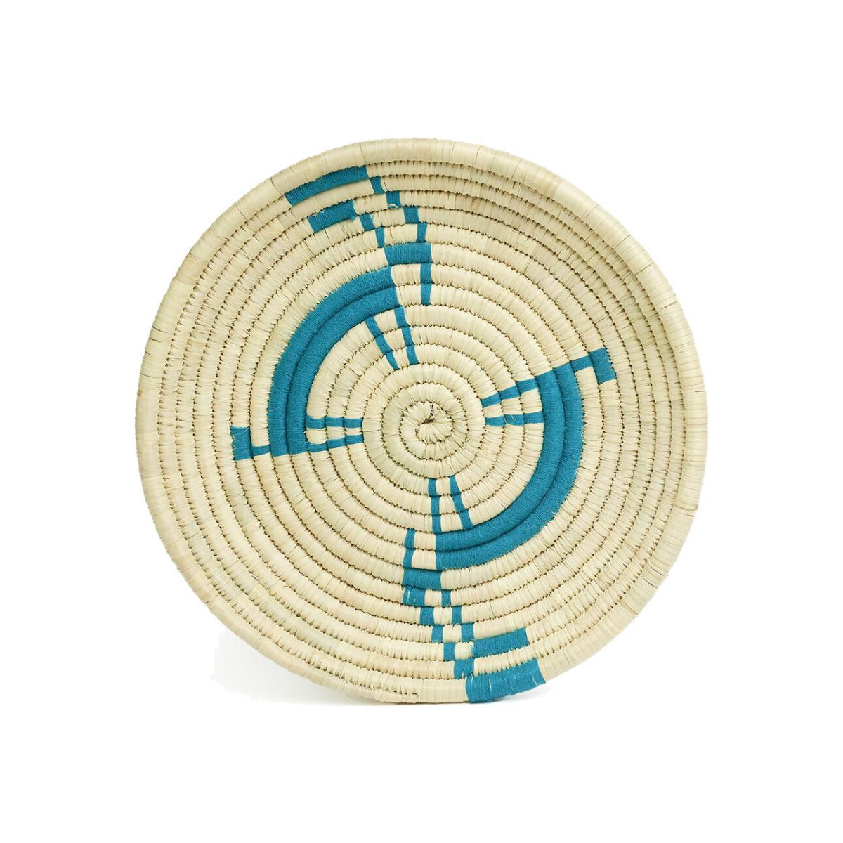 Add a beautiful finishing touch to your home with this Bibi tray from Zan Artefacts. Handwoven in Persia by skilled female artisans using the ancient technique of Kapu weaving, it boasts a natural finish with colourful detailing. Key features: * Material: date palm leaves and kertak * Dimensions: Ø34cm * Natural cream colour * With blue detailing * Handmade in Persia * Please note, due to handmade nature variations can occur