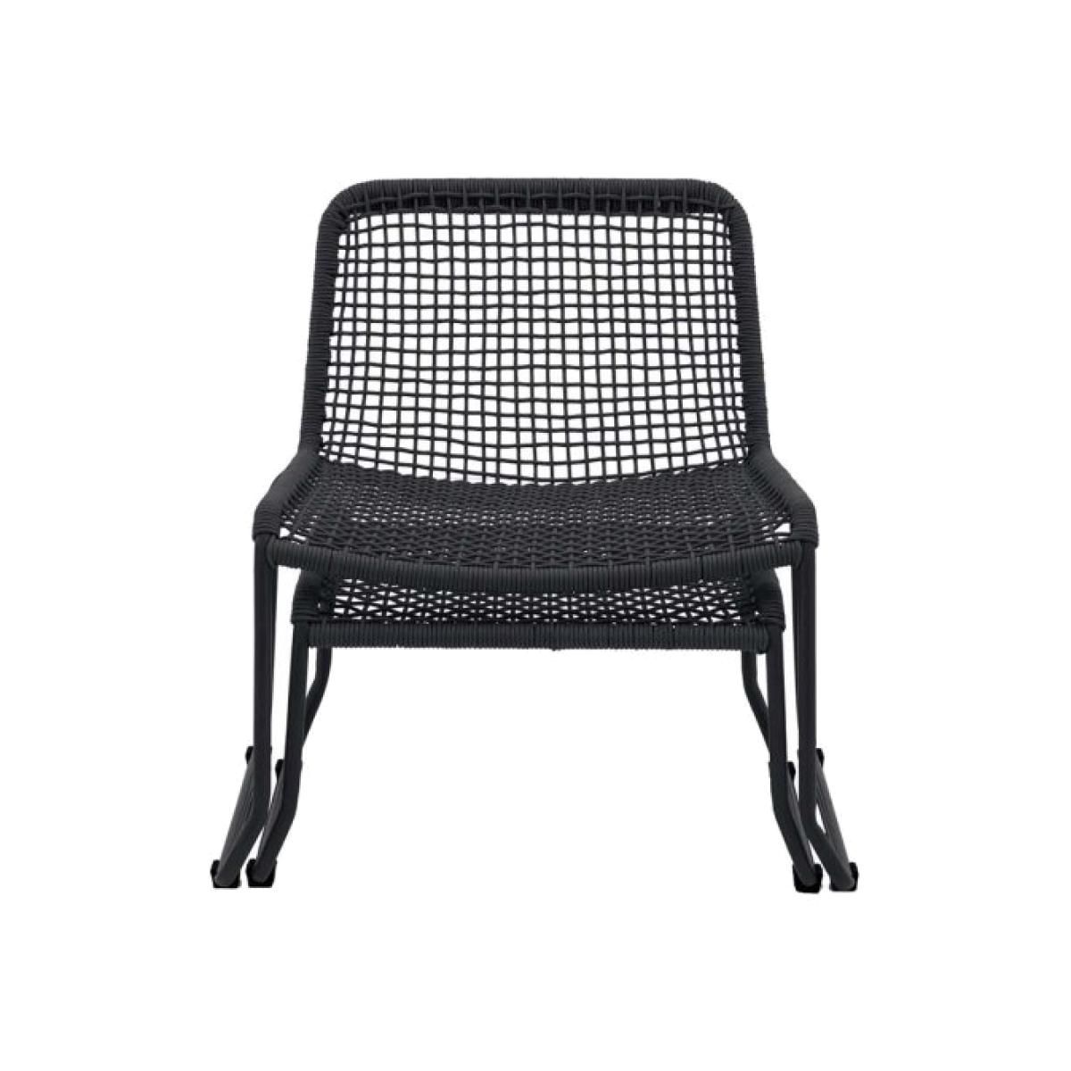 Add a pop of colour and the wow factor to your outdoor space this summer. Sit back and relax in this comfortable bold black lounger chair and footstool, made with a steel frame with woven outdoor rope seat and back for extra comfort.