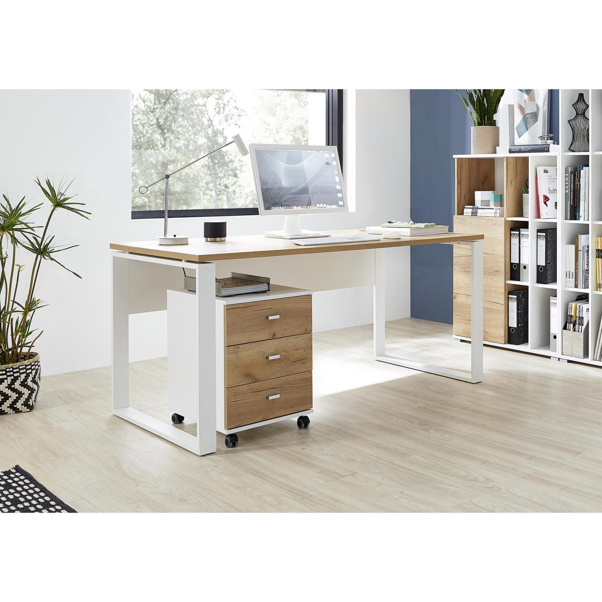 *This is a self-assembly item. Modern white desk with a stunning Navarra oak finish top. Beautifully designed and precision-made in Germany. Sturdy and strong, with a load-bearing capacity of 25kg. Why you’ll love it. Simple functional design, white with a warm Navarra oak finish top. Contemporary style at a great value price. White and oak melamine finish is strong, scratch and stain-resistant. Ideal for working, studying or hobbies at home. German designed and precision-made to a high standard. Fantastic value price. What you need to know. Easy self-assembly required, full instructions included. Construction is particle board with a melamine resin finish. Haptic wood finish resembles real wood in look and texture. Melamine finish safeguards against scratches, stains and heat damage. White back panel provides extra stability. Protective ‘ABS’ edging adds durability. Shop the Zane home office range for coordinating pieces. WARNING!. Furniture can tip over unexpectedly and cause injury. This item shall be fixed to a wall using the anti-tip kit provided with the furniture. Be sure to use the correct wall fixings suitable for the walls in your home.