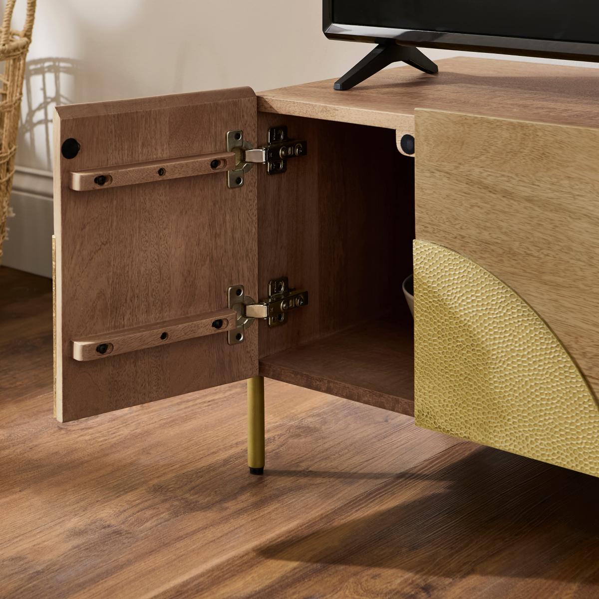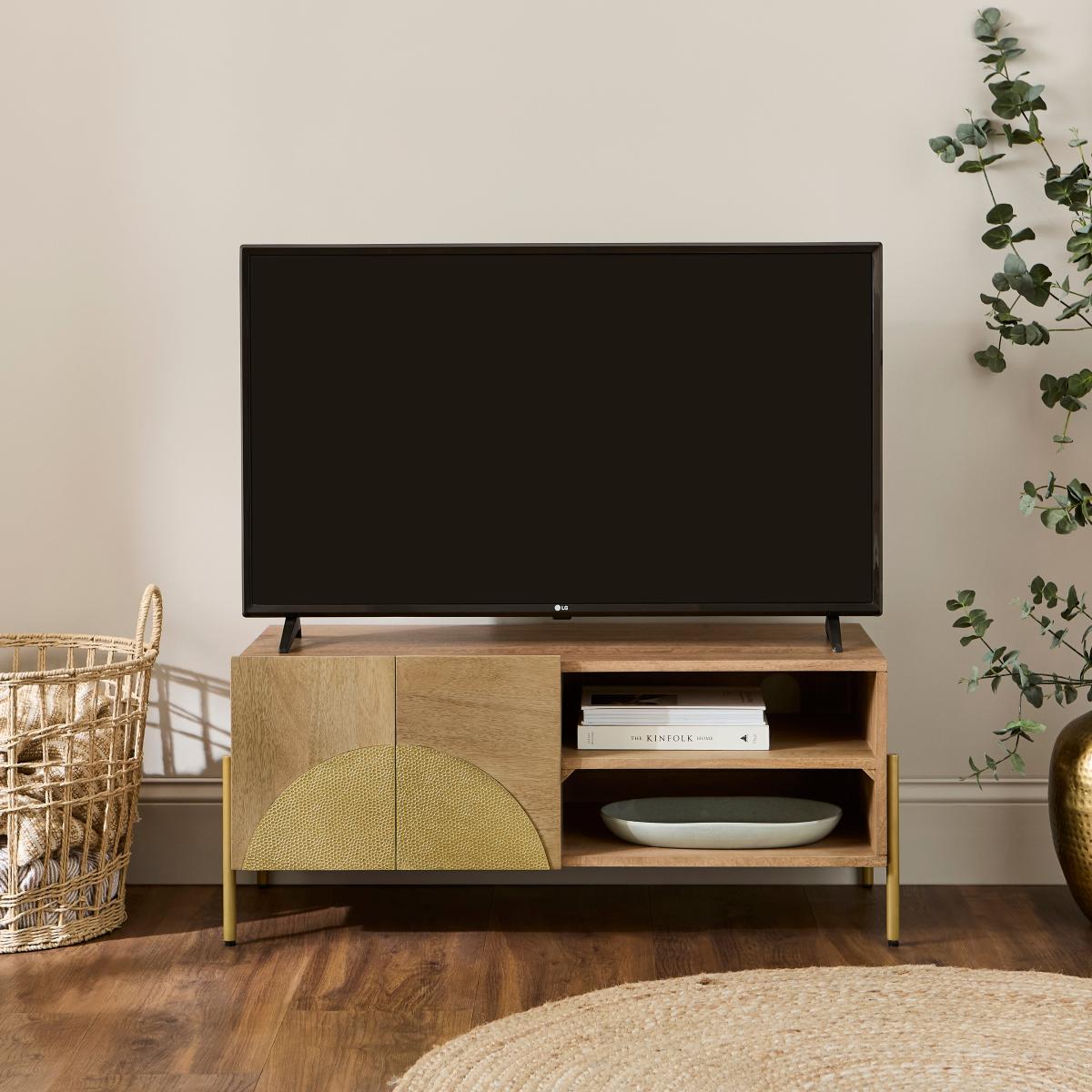 Zaneta Small TV Unit For TVs up to 42, Mango Wood and Brass Blue
