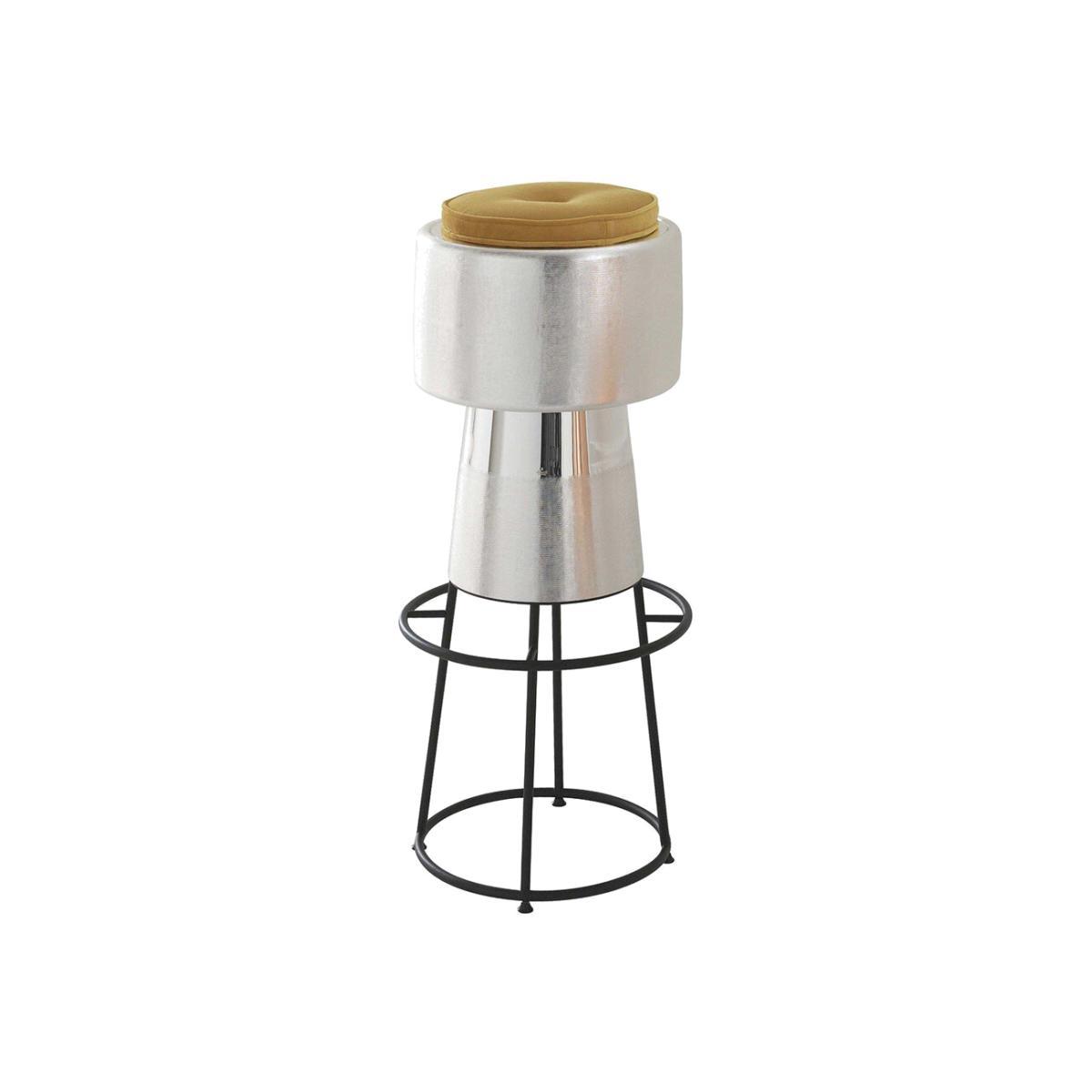 Zanetto - Tappo Stool - Satin Silver & Yellow Velvet Cushion