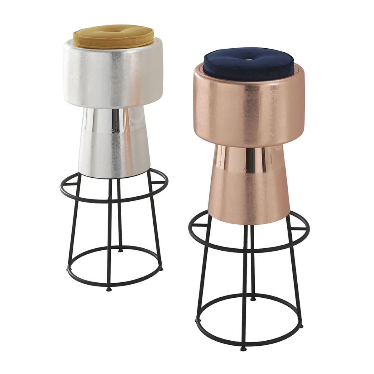 Zanetto - Tappo Stool - Shiny Copper & Emerald Velvet Cushion