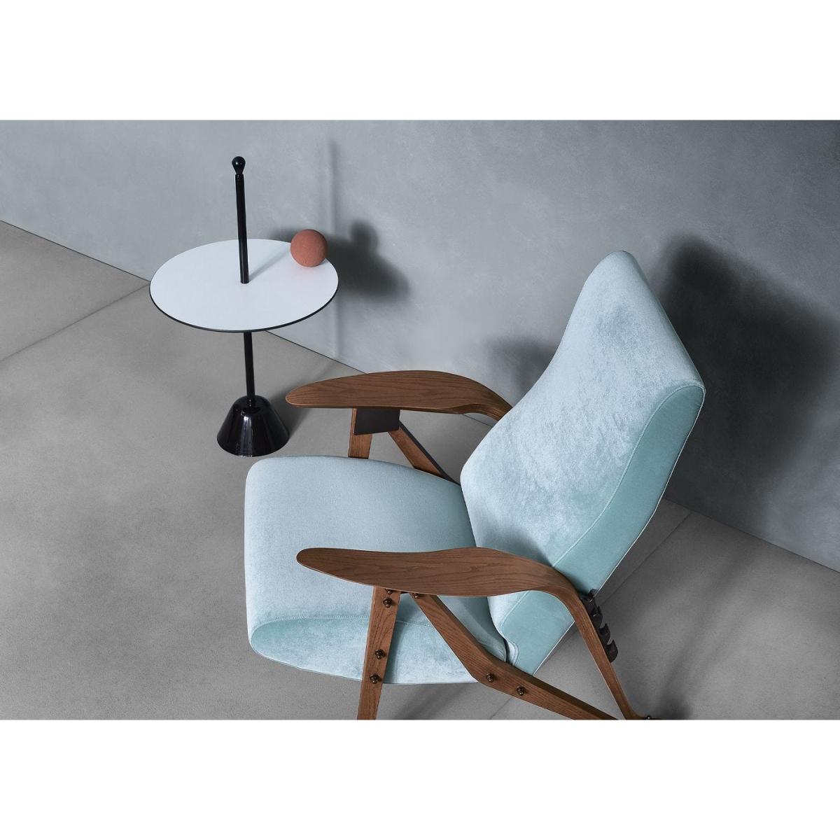 Once more, an everlasting object whose shape perfectly matches its function. Achille Castiglioni's Servomuto has a stable base, thin vertical pole with a knob at the top, and a round table at an ideal height. In other words Servomuto, light and easy to move, is the worthy heir of the essential stylish and balanced Cicognino table by Franco Albini. Servomuto marked an important moment in the history of Zanotta’s production and also in Italian Design - it became the archetype of an original category of furnishing accessory.