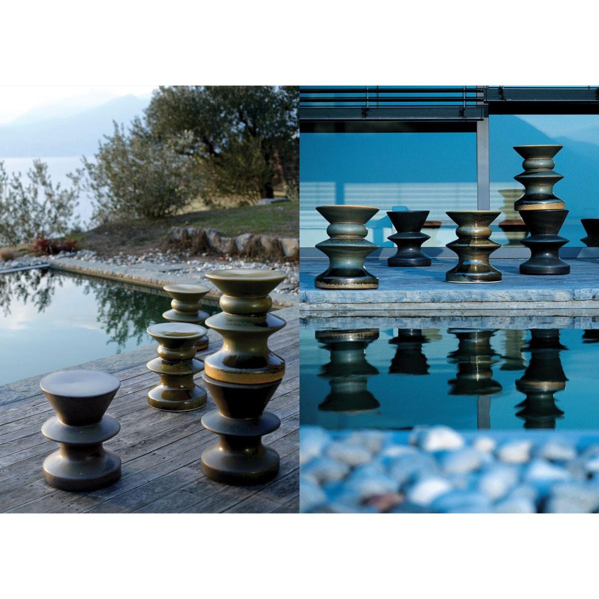 The Teti is a unique design piece, created by hand via a two-layering process and fired at 1250°C for 36 hours. This elongation creates the rich green and yellow tones seen in the finished tables.