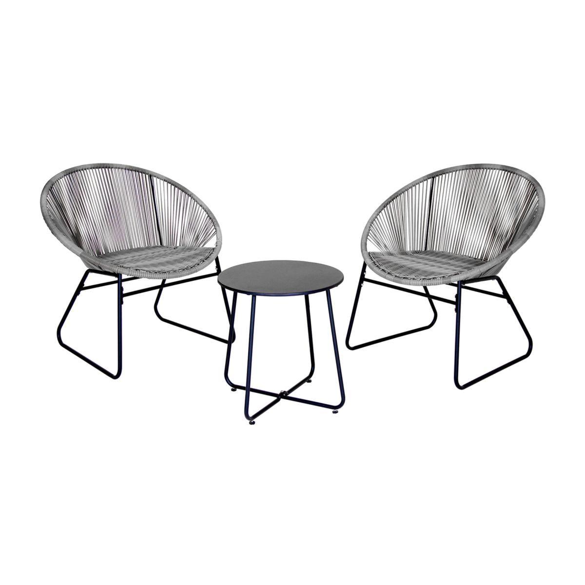 Zanzibar Tea for Two Bistro Set Cafe 2 Chairs and Table - Grey, Black