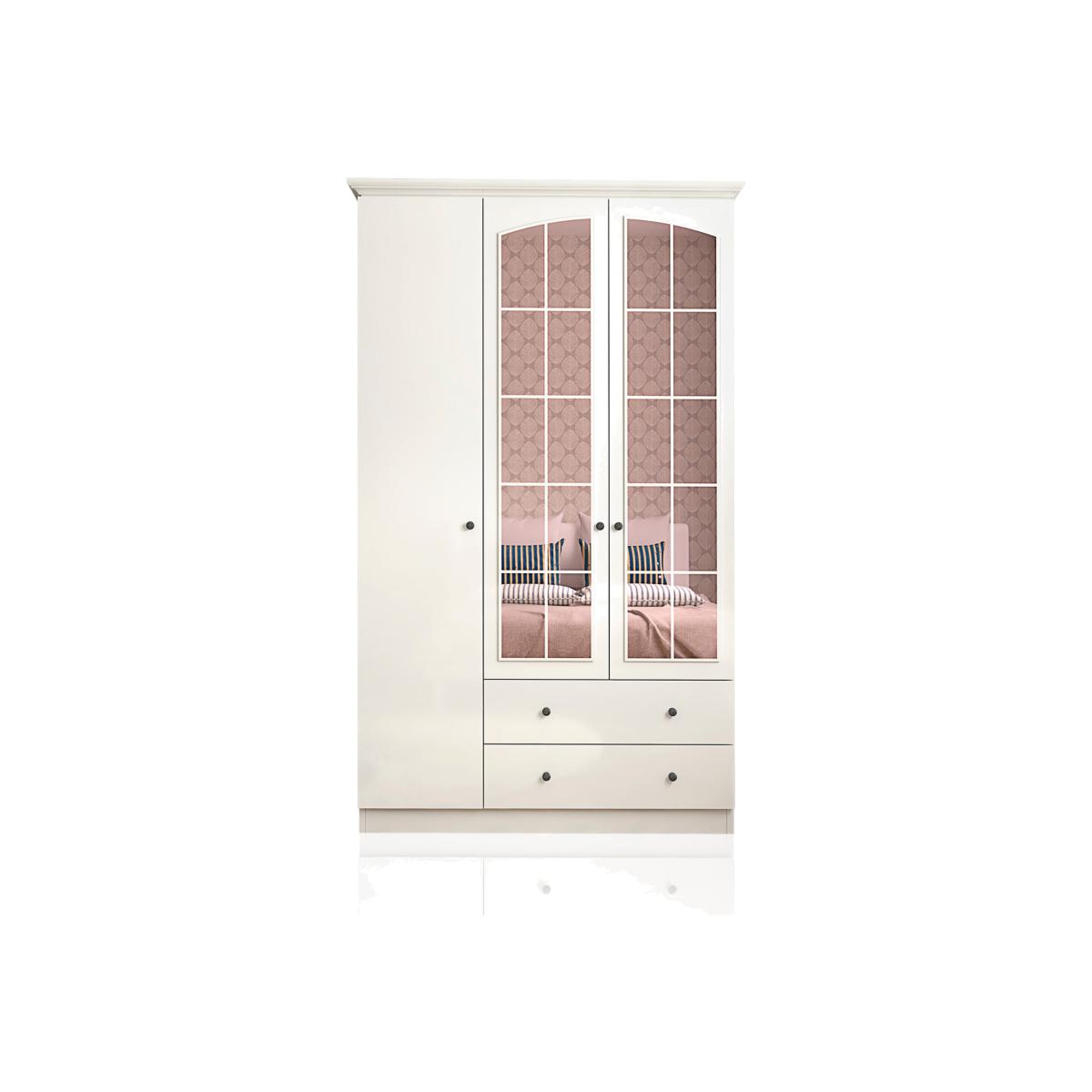 ZARA 3 Door 2 Drawer Mirrored Wardrobe, White - White