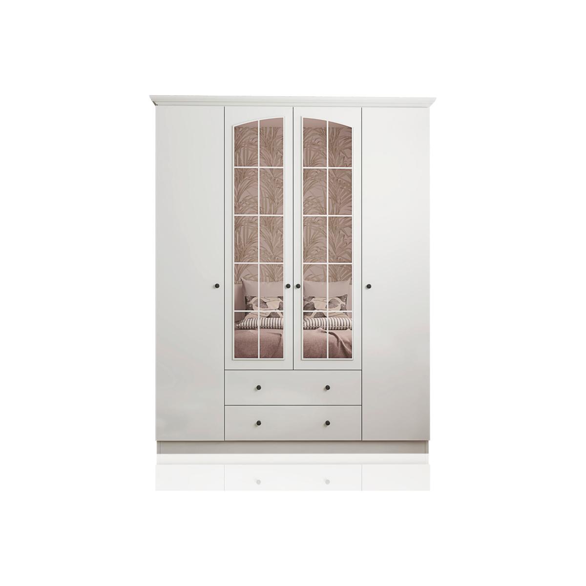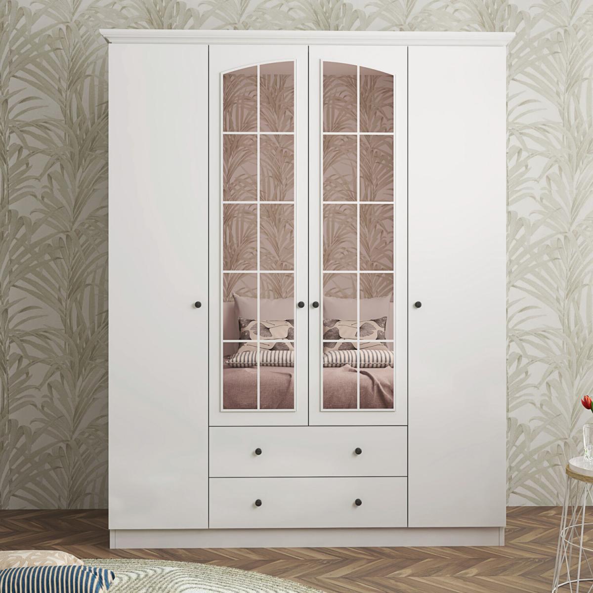 ZARA 4 Door 2 Drwer Mirrored Wardrobe, White - White