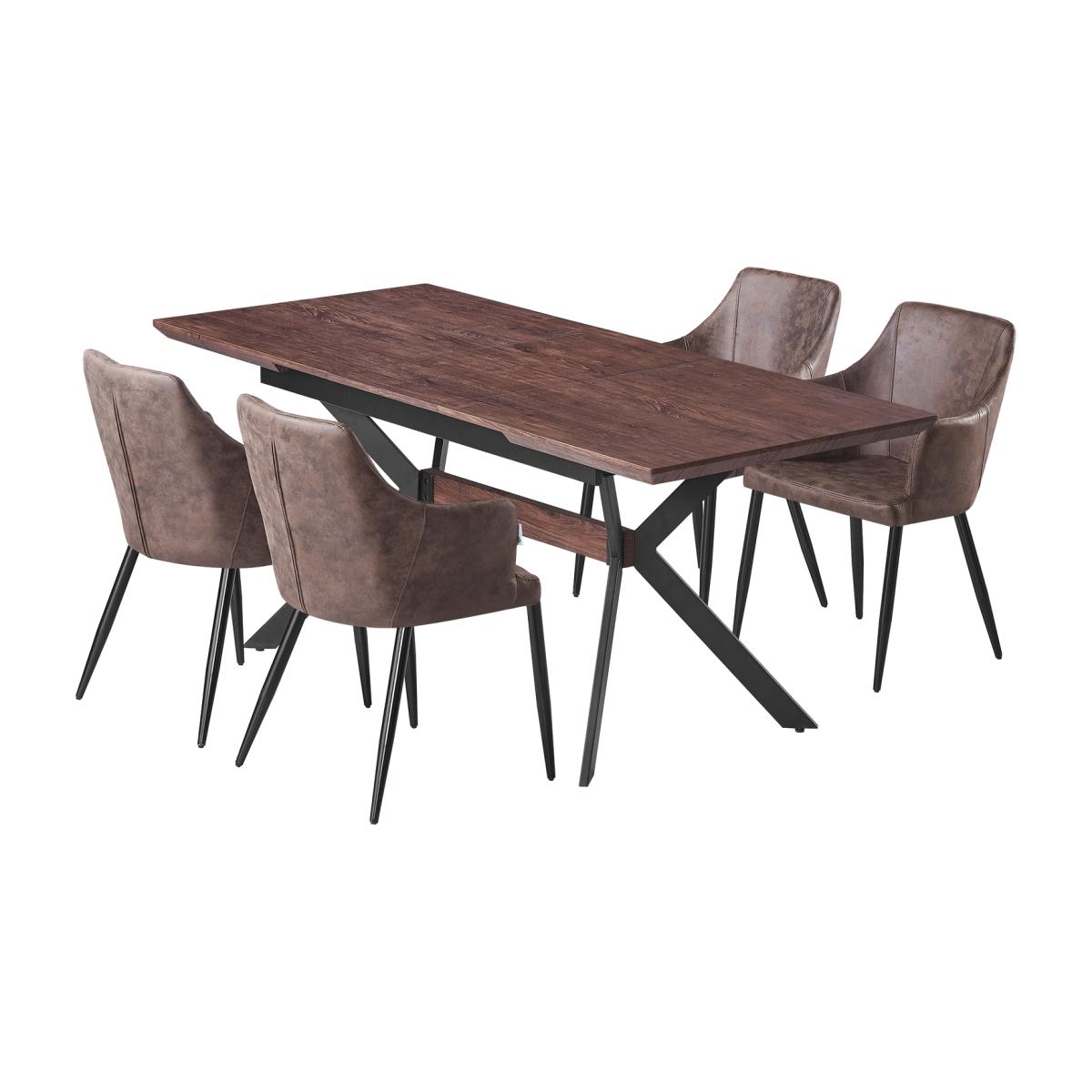 The dining set includes a Blaze Rectangle Dinette Table that features a storage leaf allowing you seating of six with ease. The base is the sculptural cross-shaped design of legs in powder-coated MDF. The chic and innovative table to pass the test of time and help you live better. Comes with the luxurious and contemporary Zarah Armchair that features a high back, metal powder-coated legs, foam padded seat, and back. The metal, powder-coated legs are sleek and sturdy while the foam padding over the body gives comfort and support where it's needed. The high back and armrests make the Zarah armchair perfect for sitting back. The faux leather finish gives this chair richness and the stitching adds detail for a rustic, hand-finished look. The elegant Chair provides you with comfort, and durability while high back with roomy seat areas to relieve the pressure on your back and legs and enable you to relax your body and sit comfortably.