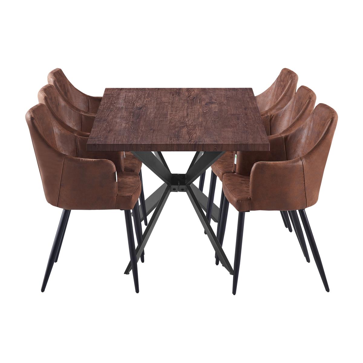 The dining set includes a Duke Lux Dinette Table that has been designed with precision and a luxury finish to deliver an amazing dining experience. The striking metal base demands attention all eyes on me. The crisscross design formation provides both strength and durability. The cross metal legs provide, not just sturdy support but, a stunning and unique design feature that will get your guests talking. The legs feature floor protectors to avoid scratching your floors. Comes with the luxurious and contemporary Zarah Armchair that features a high back, metal powder-coated legs, foam padded seat, and back. The metal, powder-coated legs are sleek and sturdy while the foam padding over the body gives comfort and support where it's needed. The high back and armrests make the Zarah armchair perfect for sitting back. The faux leather finish gives this chair richness and the stitching adds detail for a rustic, hand-finished look. The elegant Chair provides you with comfort, and durability while high back with roomy seat areas to relieve the pressure on your back and legs and enable you to relax your body and sit comfortably.