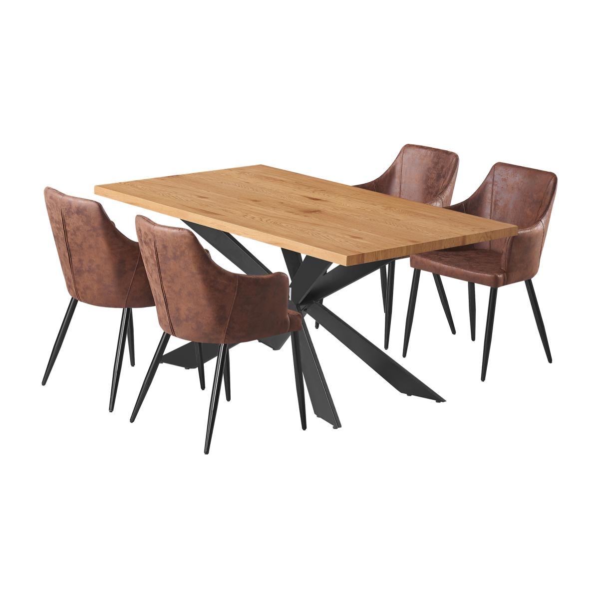 The dining set includes a Duke Lux Dinette Table that has been designed with precision and a luxury finish to deliver an amazing dining experience. The striking metal base demands attention all eyes on me. The crisscross design formation provides both strength and durability. The cross metal legs provide, not just sturdy support but, a stunning and unique design feature that will get your guests talking. The legs feature floor protectors to avoid scratching your floors. Comes with the luxurious and contemporary Zarah Armchair that features a high back, metal powder-coated legs, foam padded seat, and back. The metal, powder-coated legs are sleek and sturdy while the foam padding over the body gives comfort and support where it's needed. The high back and armrests make the Zarah armchair perfect for sitting back. The faux leather finish gives this chair richness and the stitching adds detail for a rustic, hand-finished look. The elegant Chair provides you with comfort, and durability while high back with roomy seat areas to relieve the pressure on your back and legs and enable you to relax your body and sit comfortably.