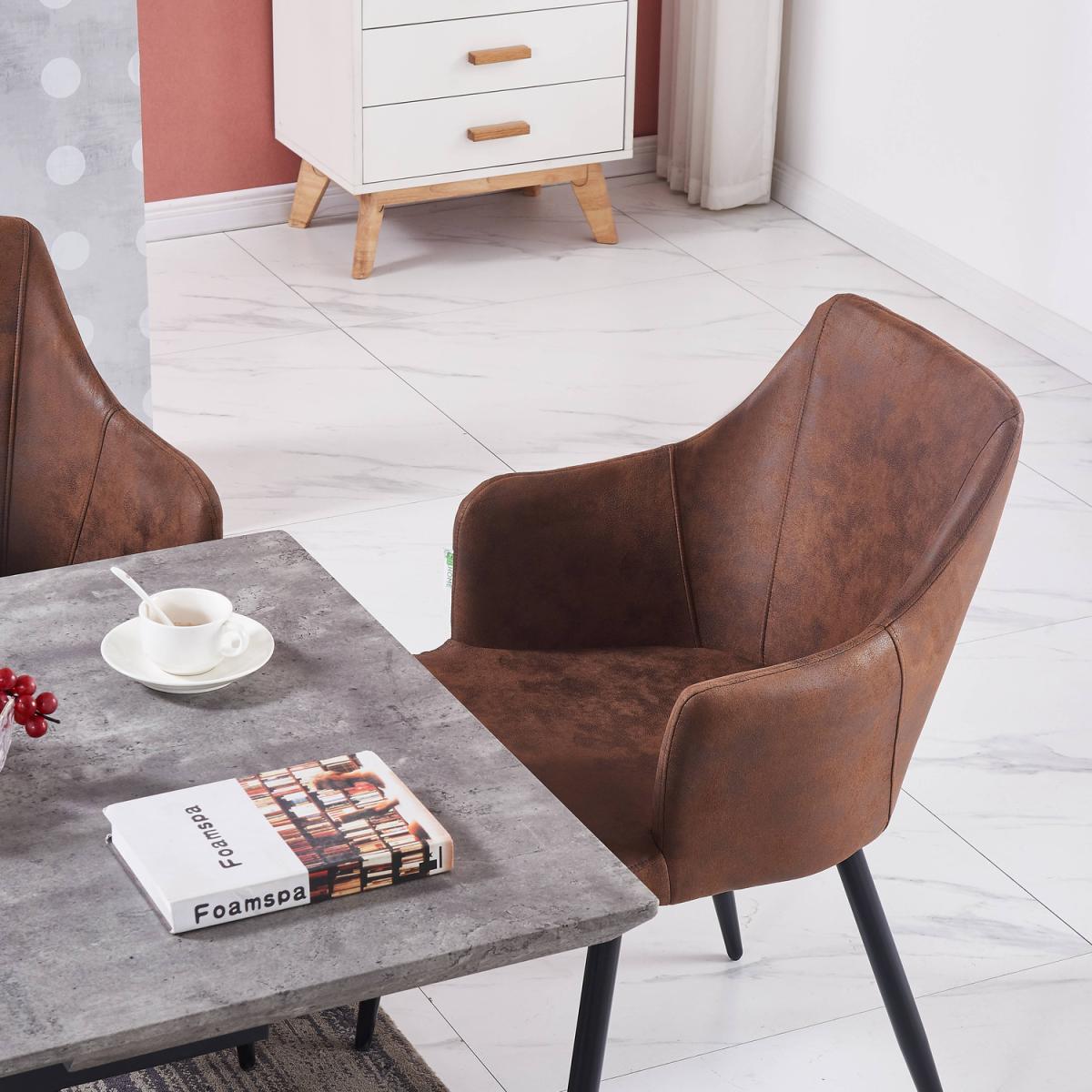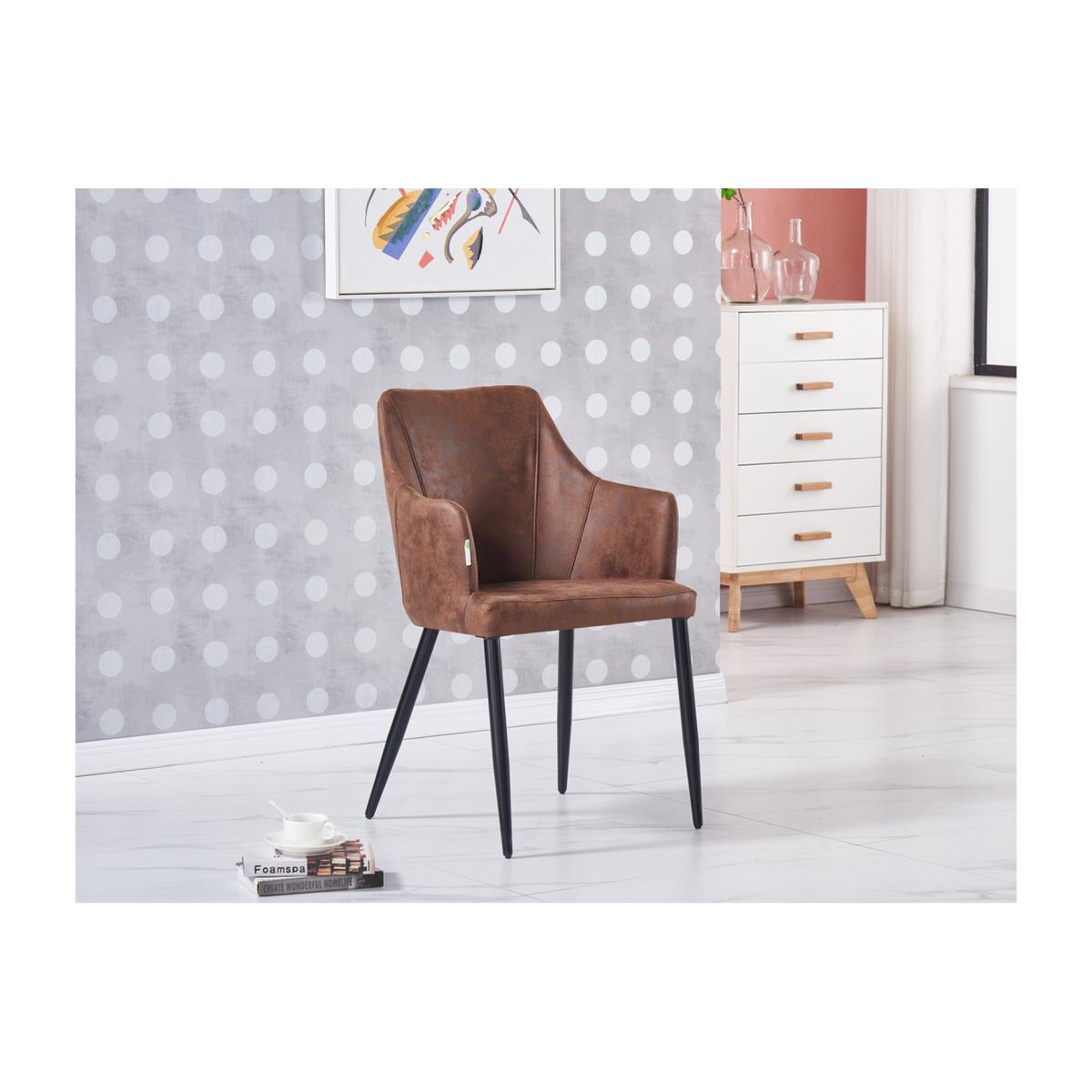The luxurious and contemporary Zarah Armchair features Faux Leather upholstery, a high back, and black powder-coated metal legs. The foam padding over the body gives comfort and support where it's needed while the metal legs are sleek and sturdy. The high back and armrests make the Zarah dining chair perfect for sitting for a whole day. Perfectly suitable for dining, living, meeting, restaurants, celebrations, dressing room, and office. You won't feel tired or stiff even though sitting for a long time. The faux leather finish gives this office chair richness and the stitching adds detail for a rustic, hand-finished look. The elegant kitchen Chair provides you with comfort, and durability while high back with roomy seat areas to relieve the pressure on your back and legs and enable you to relax your body and sit comfortably.