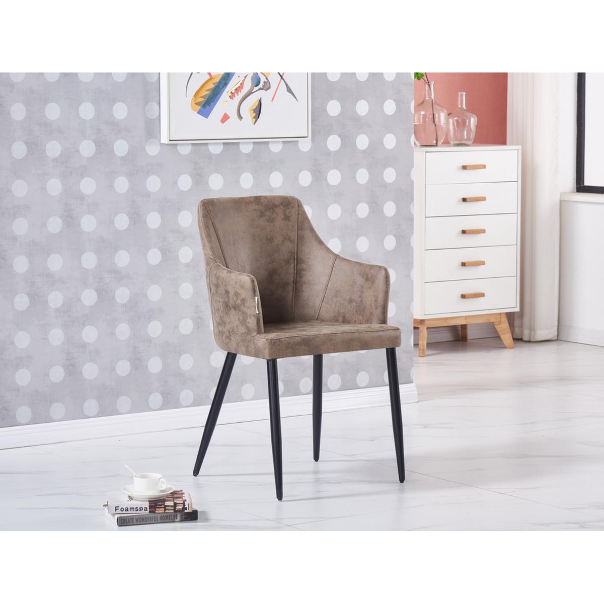 The luxurious and contemporary Zarah Armchair features Faux Leather upholstery, a high back, and black powder-coated metal legs. The foam padding over the body gives comfort and support where it's needed while the metal legs are sleek and sturdy. The high back and armrests make the Zarah dining chair perfect for sitting for a whole day. Perfectly suitable for dining, living, meeting, restaurants, celebrations, dressing room, and office. You won't feel tired or stiff even though sitting for a long time. The faux leather finish gives this office chair richness and the stitching adds detail for a rustic, hand-finished look. The elegant kitchen Chair provides you with comfort, and durability while high back with roomy seat areas to relieve the pressure on your back and legs and enable you to relax your body and sit comfortably.