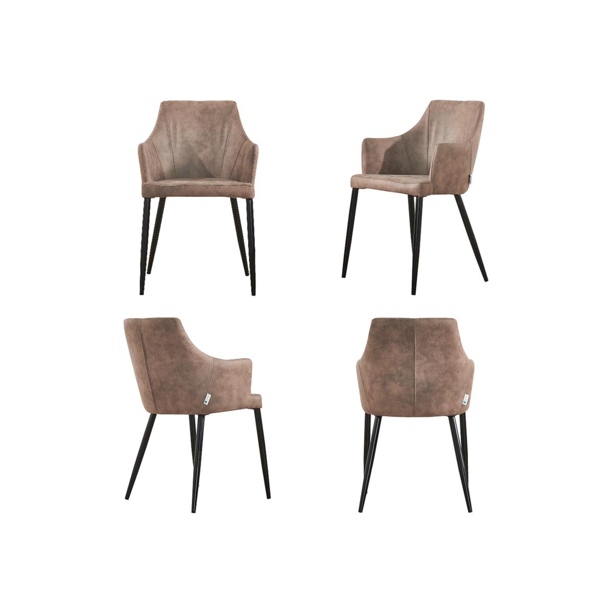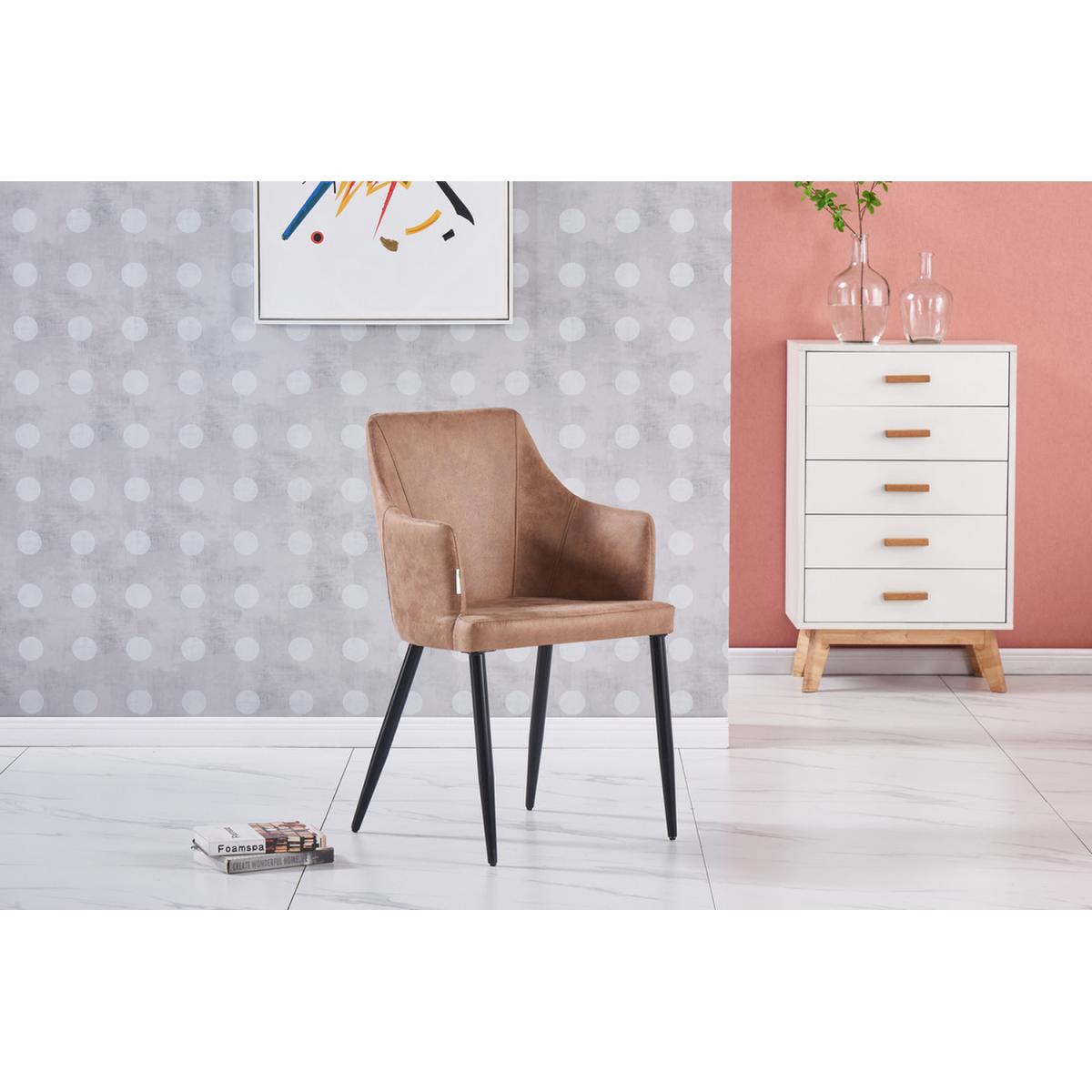 The luxurious and contemporary Zarah Armchair features Faux Leather upholstery, a high back, and black powder-coated metal legs. The foam padding over the body gives comfort and support where it's needed while the metal legs are sleek and sturdy. The high back and armrests make the Zarah dining chair perfect for sitting for a whole day. Perfectly suitable for dining, living, meeting, restaurants, celebrations, dressing room, and office. You won't feel tired or stiff even though sitting for a long time. The faux leather finish gives this office chair richness and the stitching adds detail for a rustic, hand-finished look. The elegant kitchen Chair provides you with comfort, and durability while high back with roomy seat areas to relieve the pressure on your back and legs and enable you to relax your body and sit comfortably.