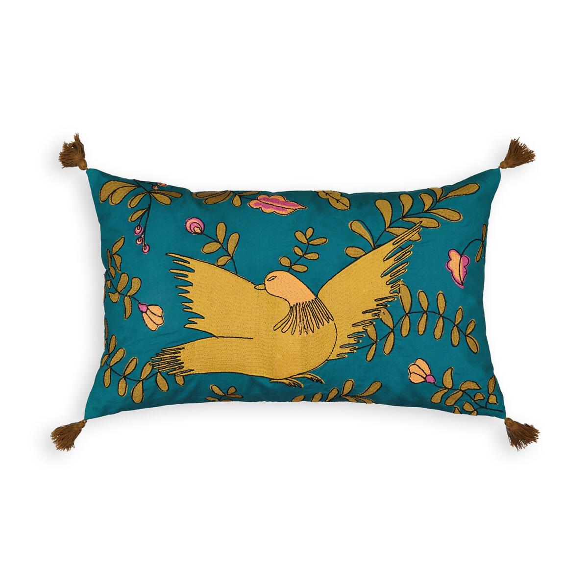 Zarautz Embroidered Bird Tassel 100% Cotton Rectangular Cushion Cover