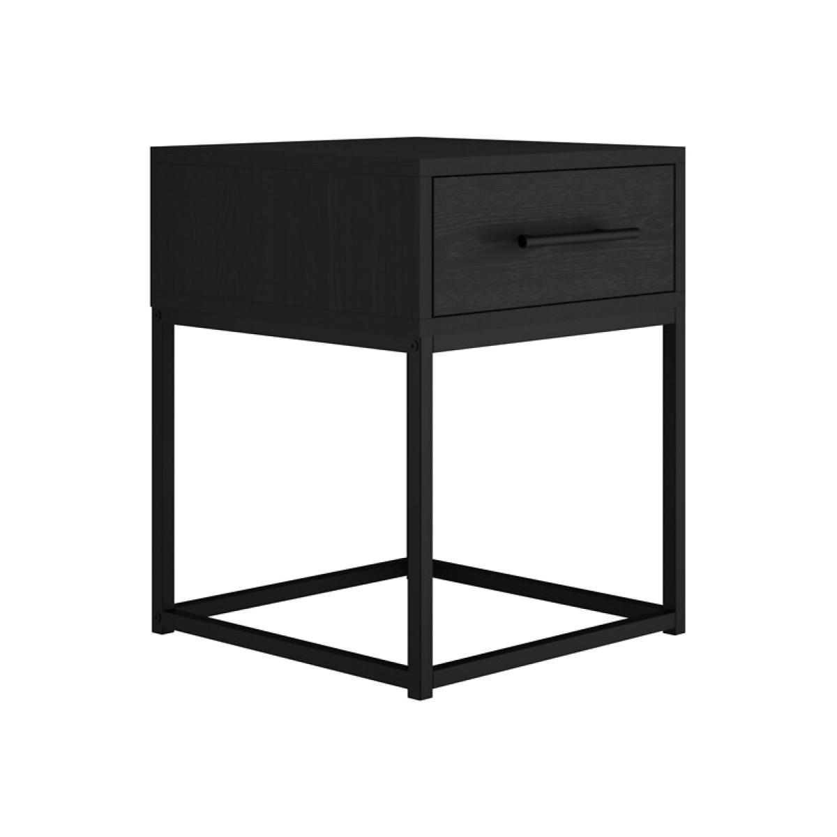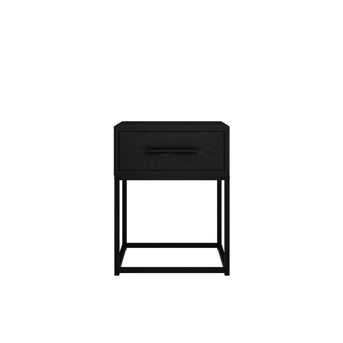Introducing the Bray bedside cabinet, a sleek addition to your bedroom with a matte black finish and a handy drawer for storage. Its neutral color and metal frame seamlessly add an industrial touch to your space. Product Details• Matte grain finish• Sleek T-bar black metal handle• Black metal frame• Full assembly required• Care advice - clean with a damp cloth or duster. Product Composition - Wood, Metal. Product Dimensions - 35 cm x 35 cm x 45 cm , Weight - 62 KGPackage Dimensions - 45 cm x 41 cm x 13 cm, Weight 7 KGPlease note: this product cannot be be delivered to all Offshore Islands, Scottish Highlands, Northern Ireland or Republic of Ireland. This product will be dispatched by one of our trusted suppliers. You’ll be contacted by their selected courier about your delivery.