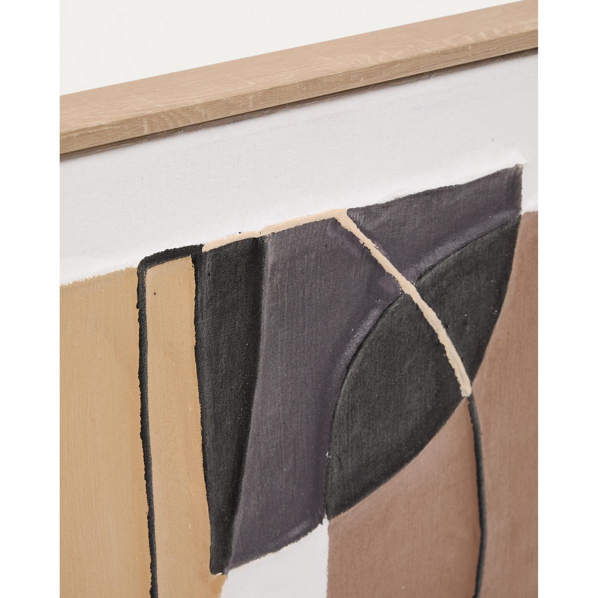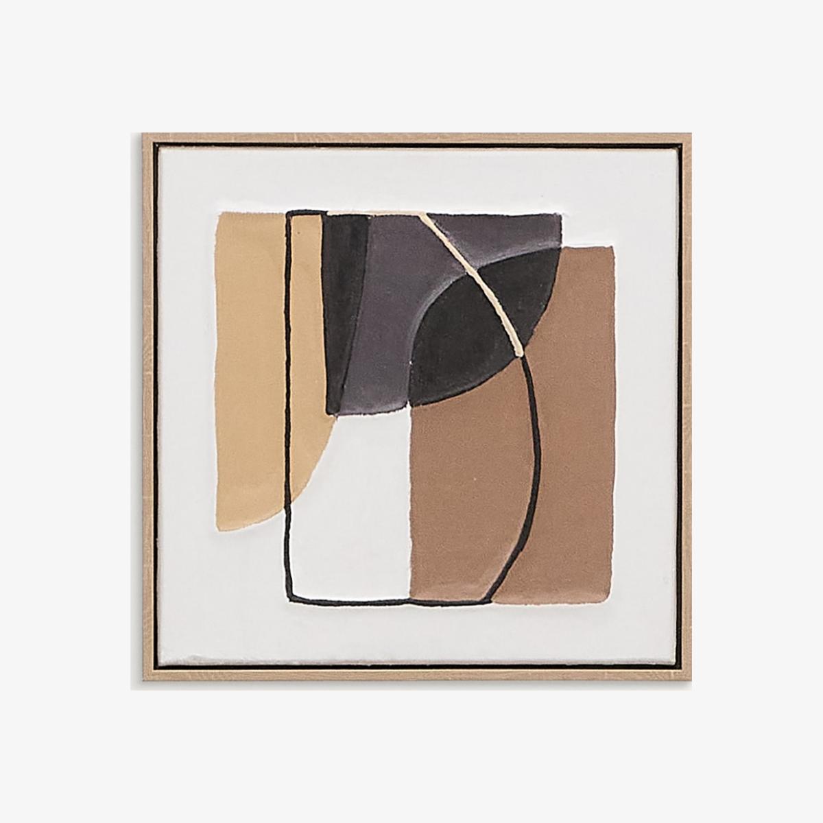 I really like this piece because the earthy tones and geometric shapes give it a modern yet warm feel, making it versatile for various interiors. It works particularly well in minimalist, Scandinavian, or contemporary spaces, where its subtle colour palette can add depth without overpowering the surroundings. To style it effectively, consider pairing it with neutral furniture or natural textures like wood or wool to emphasise its organic vibe. Hanging it at eye level above a sideboard or sofa can create a focal point, and layering with other artwork or decorative pieces can help build a curated, cohesive look.