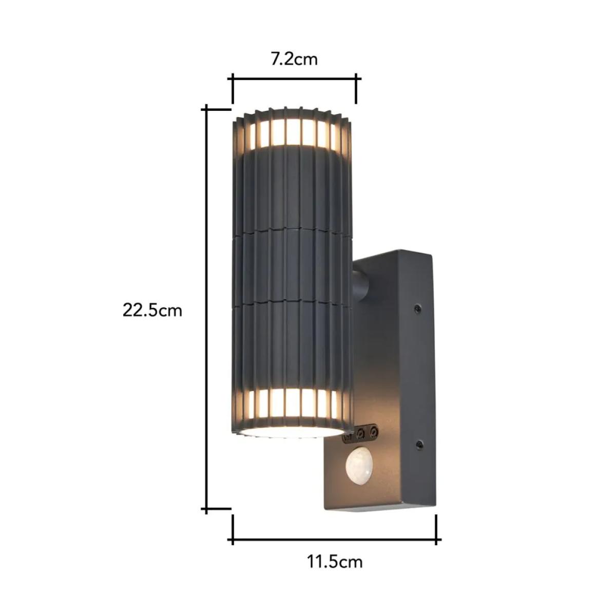 Zeb Outdoor Up and Down Wall Light with PIR Sensor, Anthracite