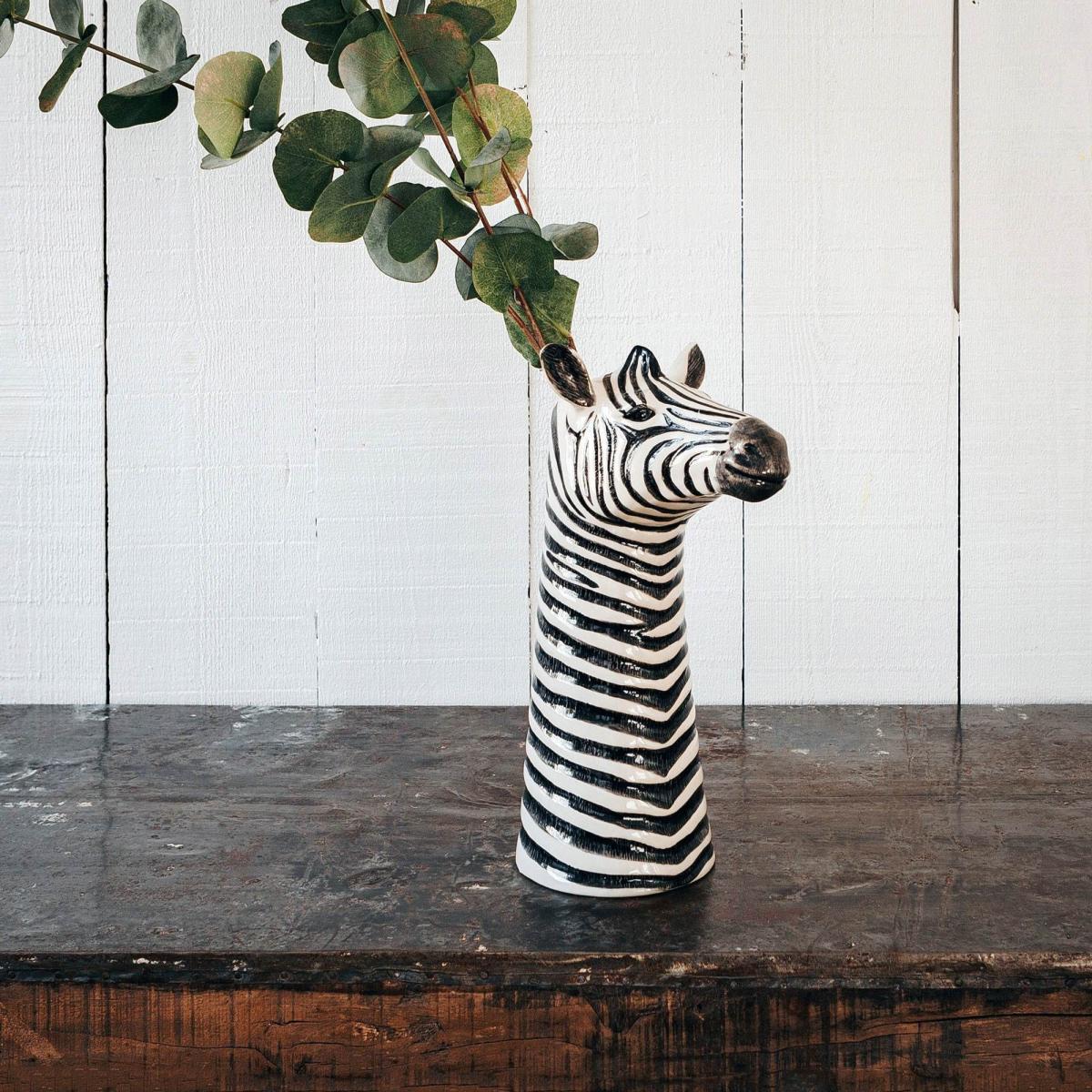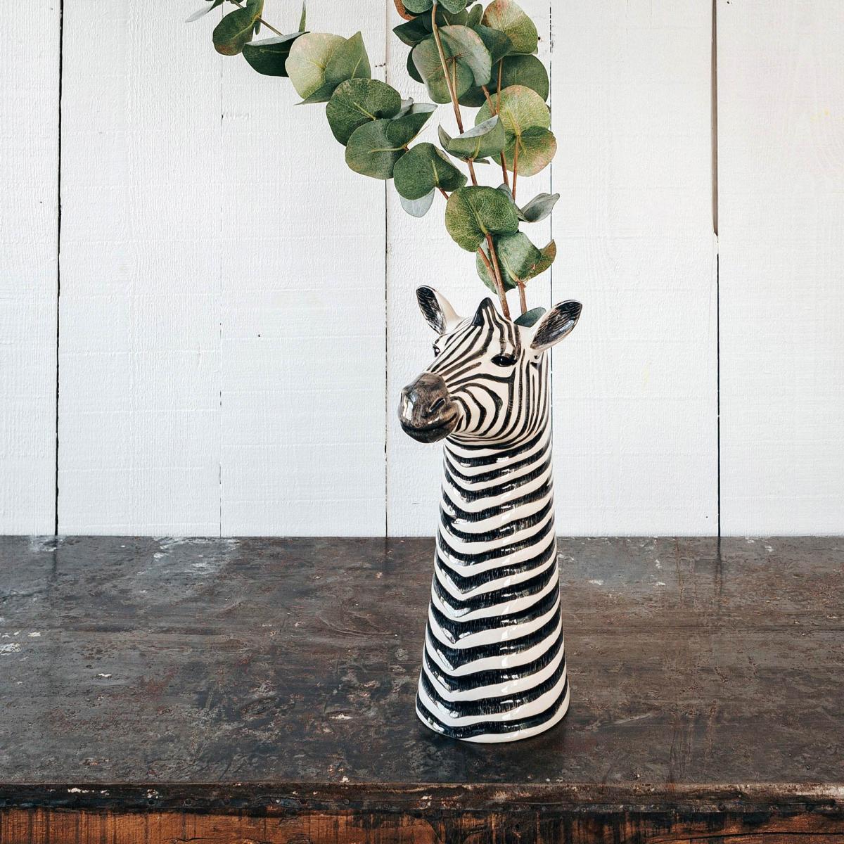 Display large blooms and fresh cuttings in this quirky zebra flower vase. H27 x W10 x D16cm. Stoneware. Handpainted finish that will vary from piece to piece.