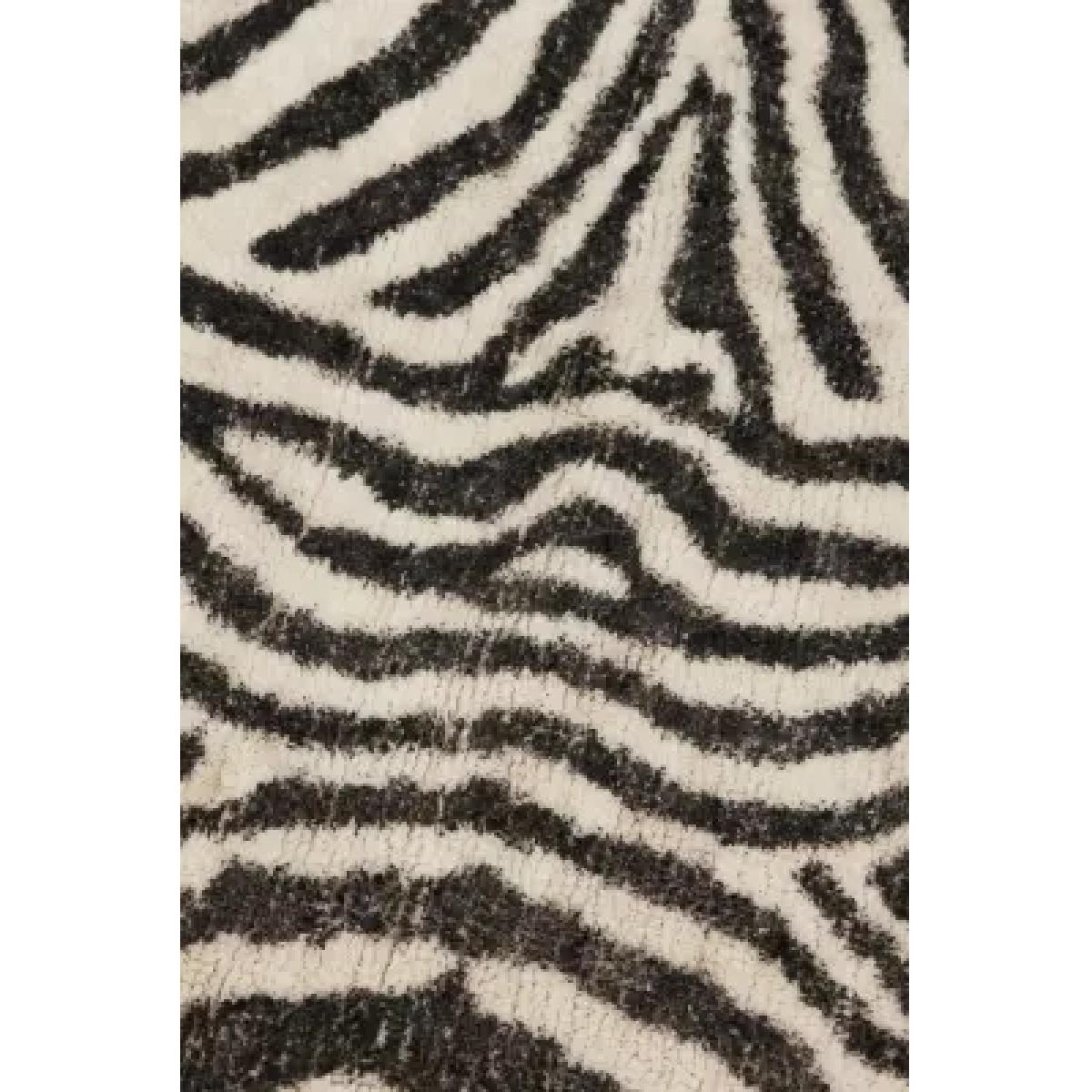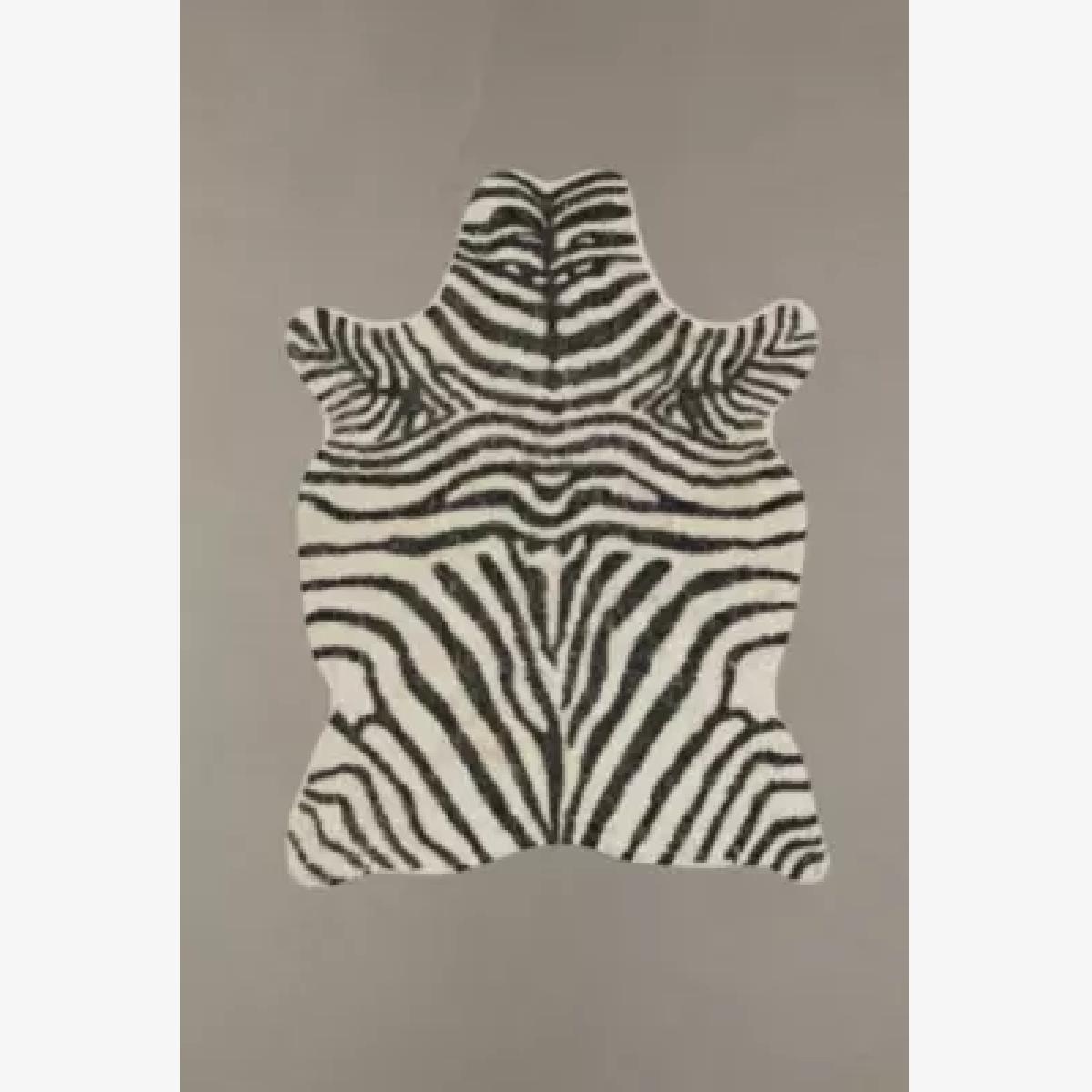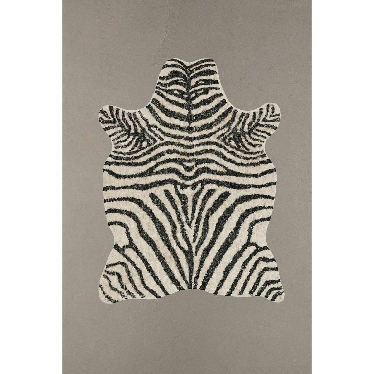 Fluffy faux fur rug topped with a zebra print, the perfect monochrome addition to your floorspace. Features a soft cut-out silhouette with printed stripes to top. **Content + Care** \- 48% Cotton, 37% Polyester, 9% Viscose, 6% Acrylic \- Spot clean