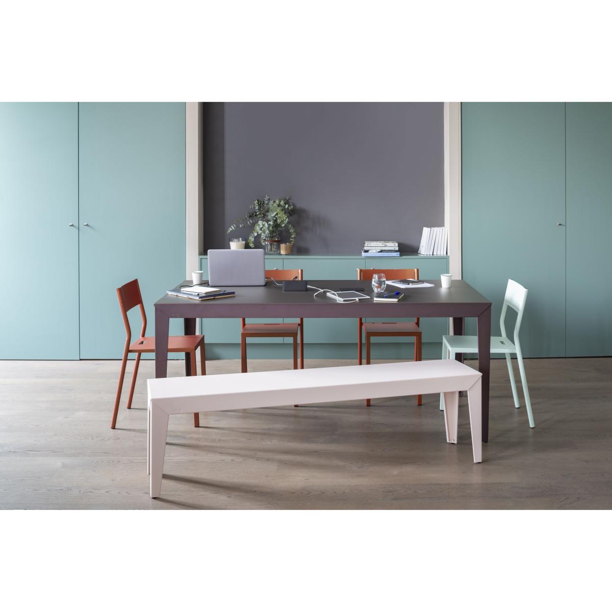 This 4-person Aluminium Bench is 100% French-made. It can be used outdoors in all seasons, even by the sea. Its sober, elegant design makes it a perfect match for a variety of table styles. The Zef Bench is the perfect complement to the tables in the same collection. Designed for easy assembly, this Metal Bench is also extremely sturdy.