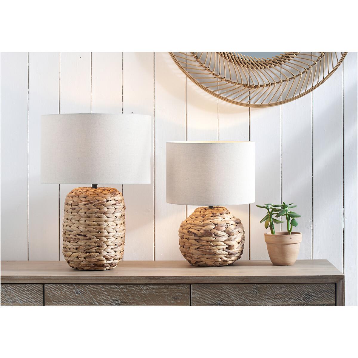 This effortlessly stylish cylinder lamp base is lovingly crafted from water hyacinth in a beautiful plaited design. The well-proportioned table lamp is finished with a natural self-lined shade that would look fabulous in a scandi or coastal interior to add a soft, organic texture. Product Dimensions: 35x 35x cm. Weight: 1.6kg. Water hyacinth 50%, Jute 50%One Size. This product will be dispatched by one of our trusted suppliers. You’ll be contacted by their selected courier about your delivery. PACIF01