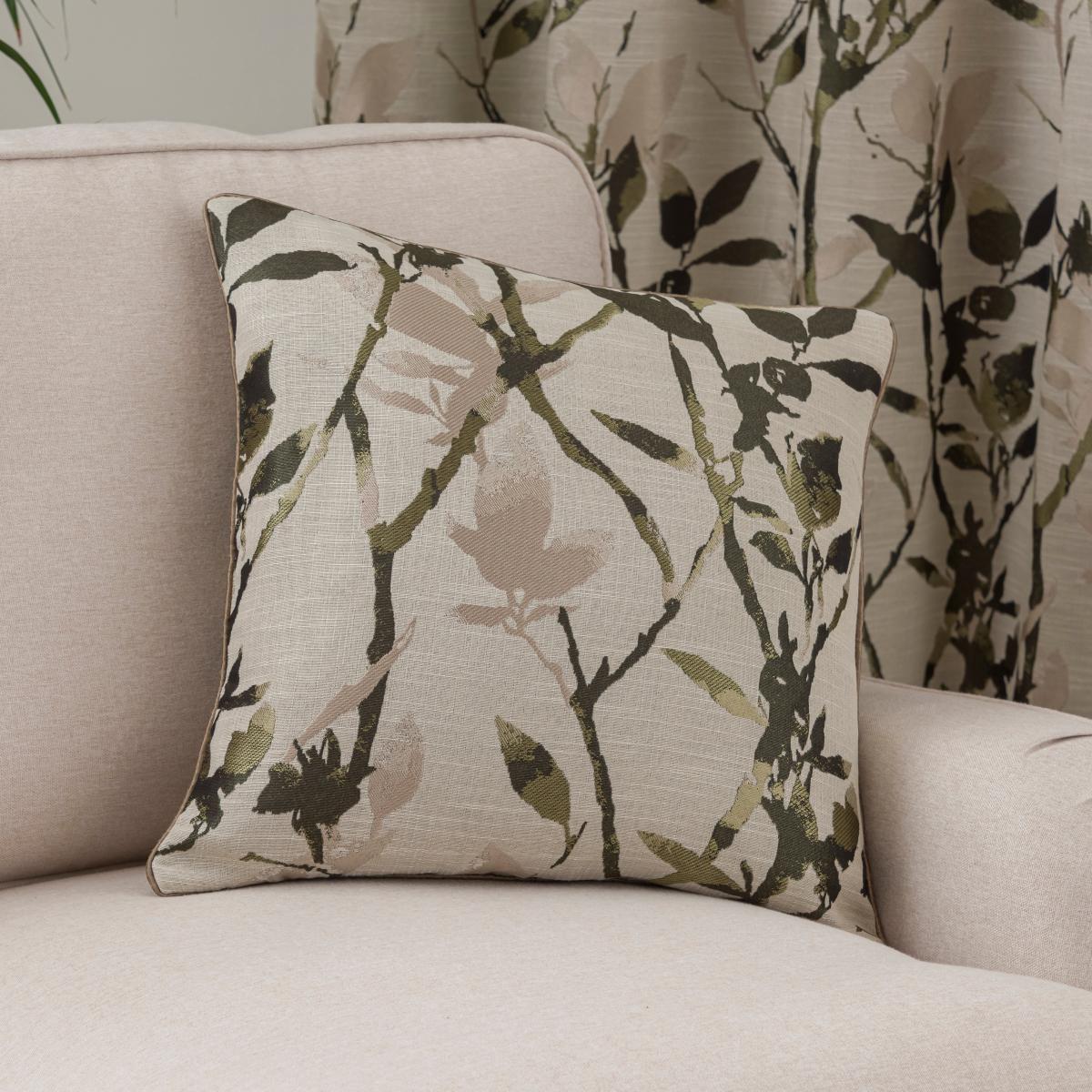 This cushion's earthy olive tone and natural botanical pattern make it a versatile accessory for adding a touch of calm to both contemporary and traditional interiors. I love it for grounding colour schemes - it pairs well with neutrals, browns, and even blush shades to create a warm, inviting space. Practical styling tips include layering it with textured throws or mixing with other cushions in solids or subtle patterns for a curated look. It works particularly well on sofas, armchairs, or even beds, providing a whisper of nature-inspired tranquillity and adding visual interest without overwhelming the space.