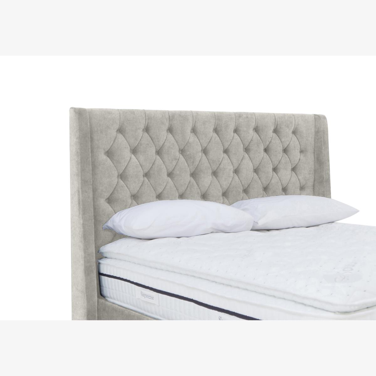 Statement bedroom style meets superb comfort in our Zen range of stunning adjustable divan bed bases. Each bed in the range comes complete with the most striking of headboards – tall, winged and with rows of buttoning for a glam twist on a classic look. Bases are electric powered and offer multi-position adjustability for complete comfort whether you’re sleeping or watching TV in bed. Zen divan bases come with optional drawers, ottoman storage and massage functionality and are available in a choice of sizes. The range also includes dual adjustable bases. Designed and handcrafted exclusively for Furniture Village, the Zen range is part of our E-Motion adjustable bed collection. This beautiful floor standing headboard is made by hand as evidenced by the stunningly detailed buttoned finish framed by winged sides. Handcrafted. Why you'll love it Statement floor standing headboard has traditional buttoning and winged sides. Luxuriously upholstered from top to floor for a neatly finished appearance. Made with sustainable FSC-sourced wood. In a choice of beautiful fabrics. Handcrafted in the UK. This headboard is only available at Furniture Village. What you need to know Available in single, small double, double, king and super king sizes. Clean regularly using a soft brush or vacuum with the curtain attachment. Deal with any spills promptly. Professional cleaning advised for oil- and grease-based stains. Some fabrics can show wear on areas of more use or in direct sunlight.