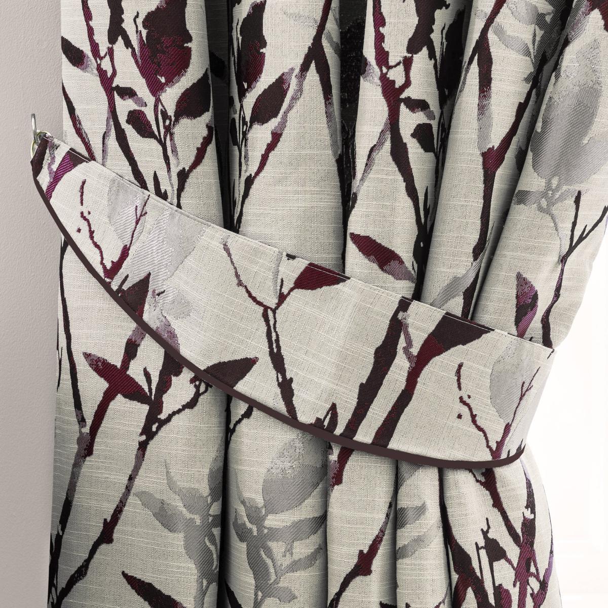 These Zen tiebacks are fashioned from gorgeous jacquard fabric and are decorated with a beautiful trailing floral design. Supplied as a pack of two, these elegant tiebacks are completed in a rich purple colourway and are ideal to coordinate with the Zen curtains.