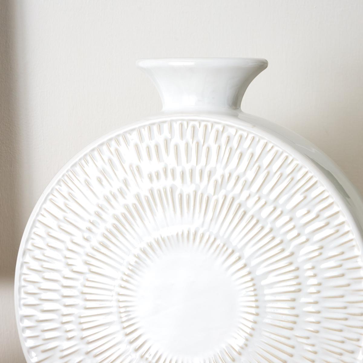 I love this white vase for its clean, minimalist aesthetic, which makes it incredibly versatile in many interiors. It works especially well in contemporary or Scandi-style spaces, where its simplicity can be a focal point. Practical styling tips include pairing it with fresh or dried stems for a natural touch, or standing it solo to highlight its sculptural form. Its neutral colour also allows it to blend seamlessly with a variety of colour schemes, making it a reliable piece to have in your decorative collection. Placing it on a sideboard, shelf, or console table can instantly elevate the room with subtle sophistication.