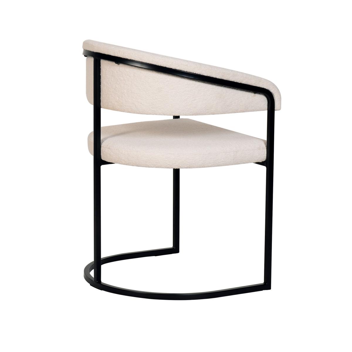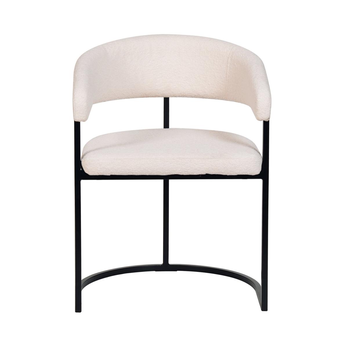 Elevate the look of your dining space with the the eye-catching, gorgeous Zena Boucle Dining Chair. The understated, elegant design of the chair paired with the stylish boucle upholstered seat and black metal legs make this contemporary chair a stunning addition to any home. Sit back, and enjoy your meal in style.