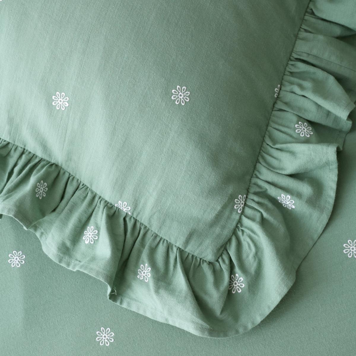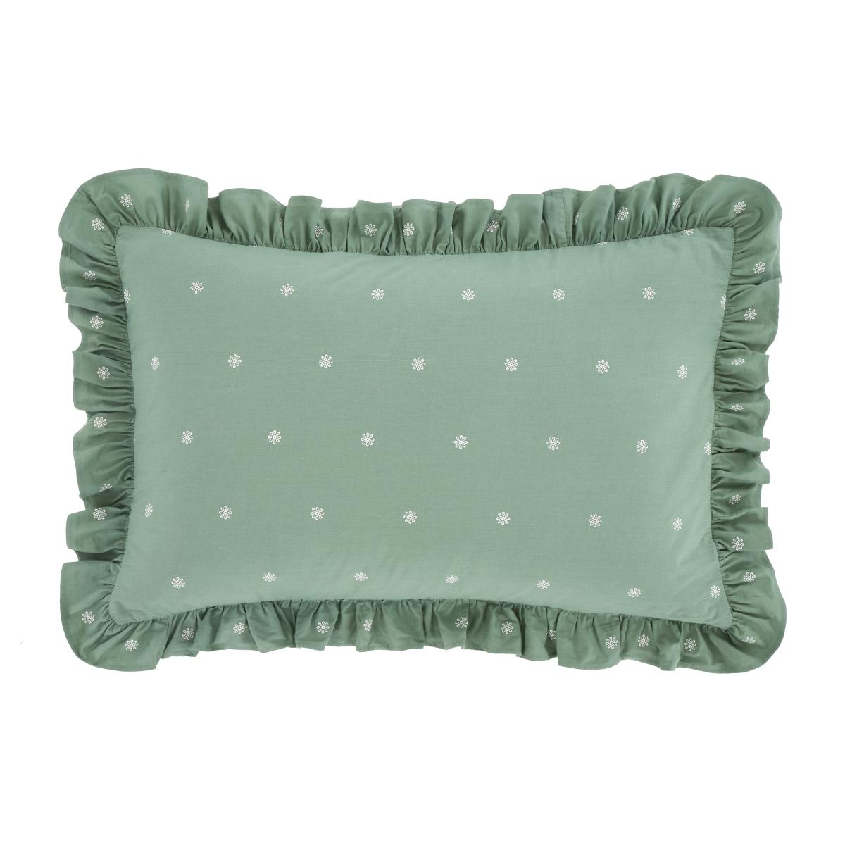 * Soft and breathable 100% Cotton composition* Abstract design* Button closure* Machine washable* Corresponding items sold separately Add a charming touch to your bedroom with these Zendaya Frilled Edge pillowcases. This collection features a delightful floral embroidery with a modern frilled edge, creating a stylish yet relaxed aesthetic. Made from 100% cotton, this bedding is naturally soft, breathable, and smooth, perfect for year-round use. The set includes two standard pillowcases with a button closure, ensuring comfort and style for a restful night’s sleep. This collection is verified by OEKO-TEX and independently tested for harmful substances as well as manufactured using sustainable processes under socially responsible working conditions. MADE IN GREEN by OEKO-TEX is a unique product label to trace the countries and production facilities - search the product label for more information.
