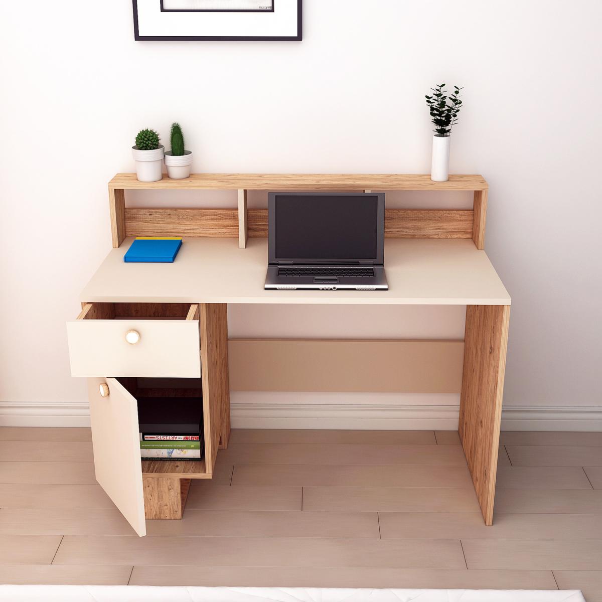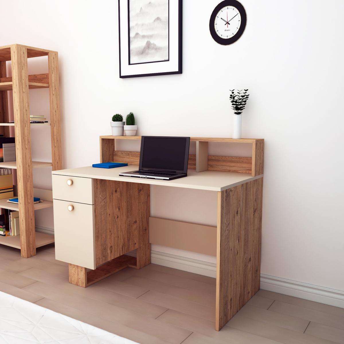 MATERIAL The computer desk is made of an 18 mm thick quality melamine-coated particleboard. The manufactured wood surface is water-resistant to some extent and the edges are banded with PVC edge banding tape. First-class assemblyinstallation hardware and accessories are used. Our products are produced from certified quality raw materials that do not contain carcinogenic substances and comply with European Union health norms. CLEANING You can clean your furniture with a dry cloth. Avoid prolonged contact of your product with moisture and water. ASSEMBLY The product will be delivered to the customer in the original package as disassembled. It is designed to be assembled by the customer using a power drill and screwdriver. Assembly instructions and installation hardware are included in the package. For fast and error-free installation, product parts are numbered with stickers in accordance with the assembly guide.