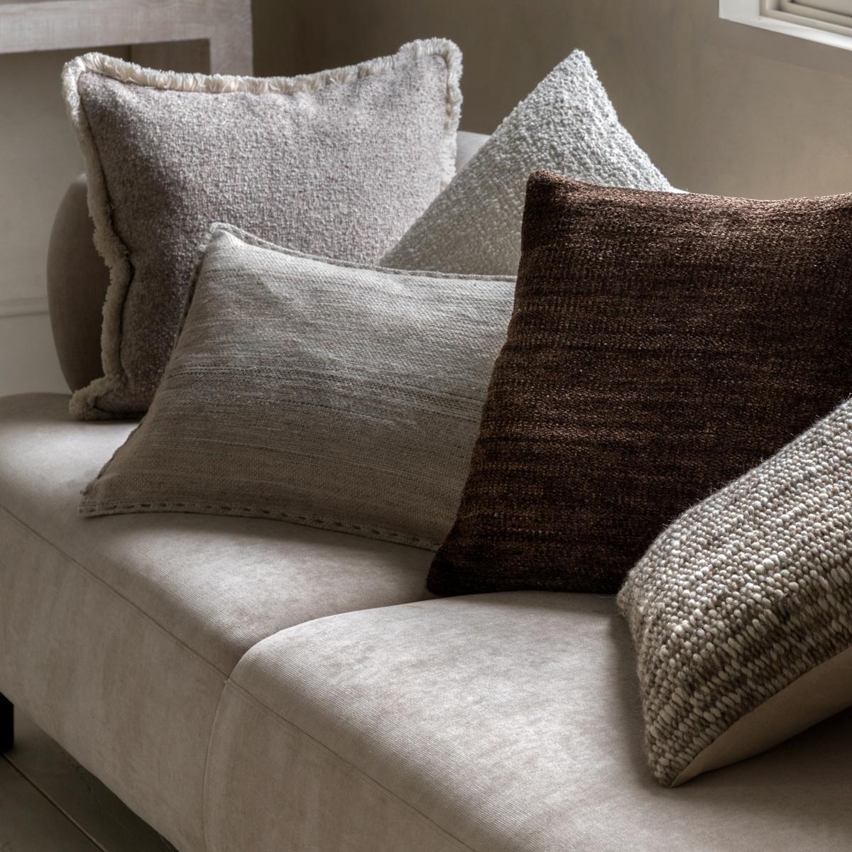 I love this cushion for its versatile, neutral tone, which makes it a great addition to both modern and more traditional interiors. The natural colour and textured finish add warmth and interest without overwhelming the space. It works particularly well in neutral palettes, layered with other textiles such as linen or wool, to create a cosy yet sophisticated look. For styling, pair it with complementing colours or mix it with bolder patterns for a slightly more eclectic vibe. It’s perfect for adding softness and comfort to sofas, armchairs or even bedscapes, and works equally well in living rooms or bedrooms to bring a touch of understated elegance.