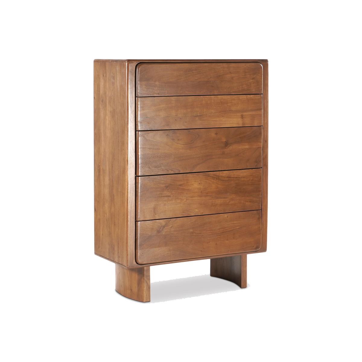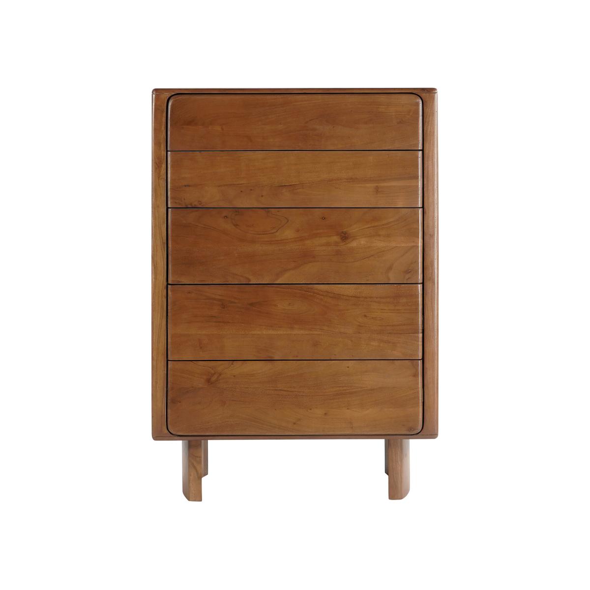 This charming five-drawer chest combines the natural beauty of acacia wood with a warm light-walnut finish. Its smooth grain, clean lines, and sturdy build bring a touch of modern rustic style to any room. Spacious drawers glide easily, offering plenty of storage while keeping your space neat and inviting.