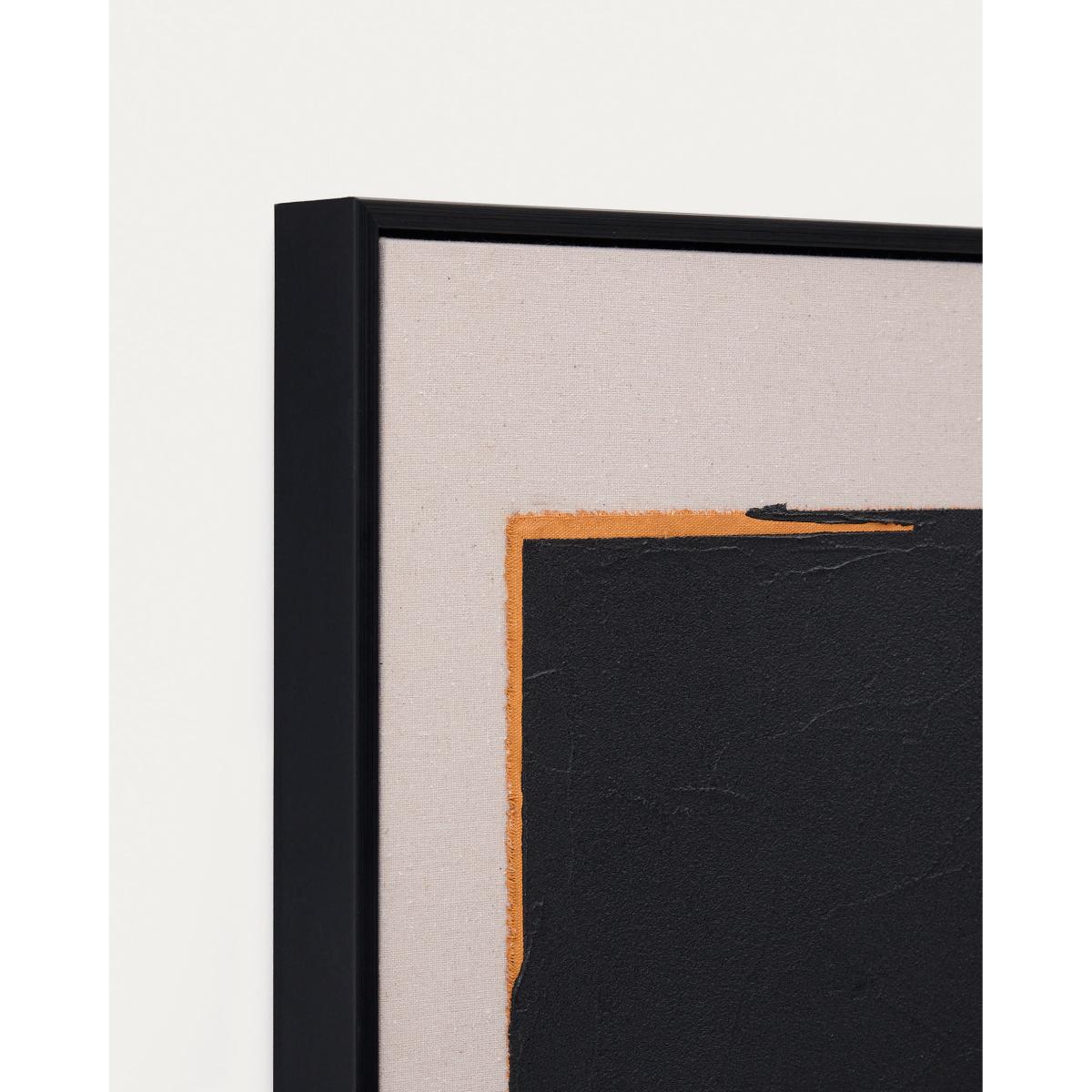 The Zernu collection plays with the contrast between black and colour, creating a positive and negative effect that adds visual strength to each piece. This design evokes the sensation of objects against the light, highlighting shapes and volumes with a captivating effect. The black part is produced with paint, while the coloured background is made from painted fabric, generating an overlap that adds depth and volume. The canvas combines different textures, making the clash between paint and fabric visible. Each stroke is perceived in a unique way, highlighting the richness of the materials and the technique used. The picture has a black frame that defines and completes the composition with a clean and precise finish.