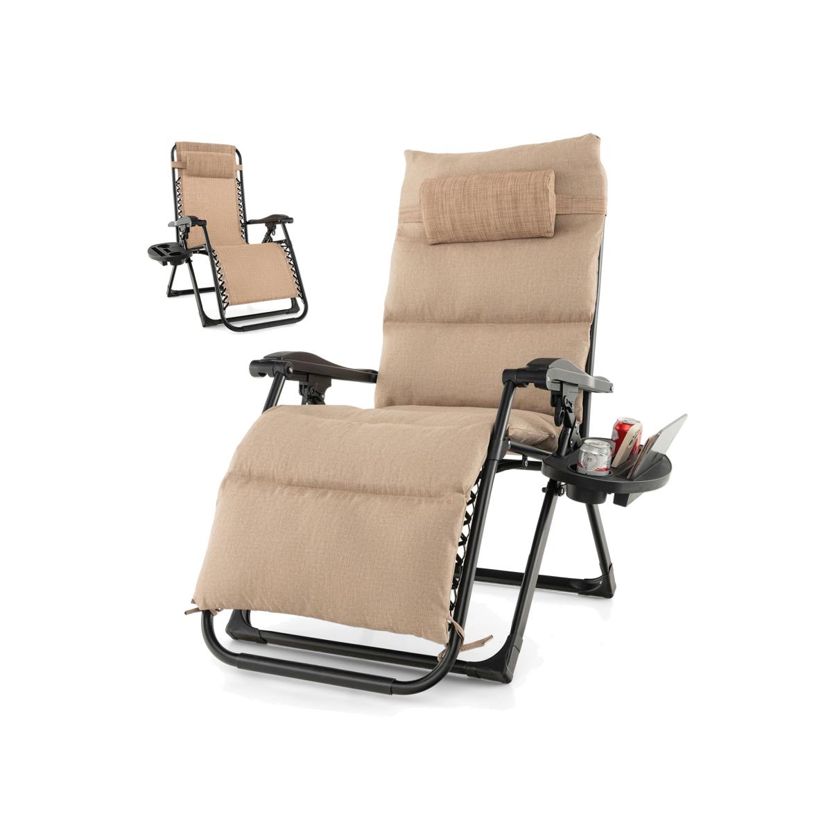 This patio recliner also has a cup holder tray attached, so you can keep your favorite beverage within reach as you relax. If you wanna get a more breathable feeling, just remove the cushion. And the headrest provides additional support for your neck and head. Designed with convenience in mind, this lawn recliner is foldable, making it easy to transport and store. Zero Gravity Lounge Chair with Removable Cushion - Brown