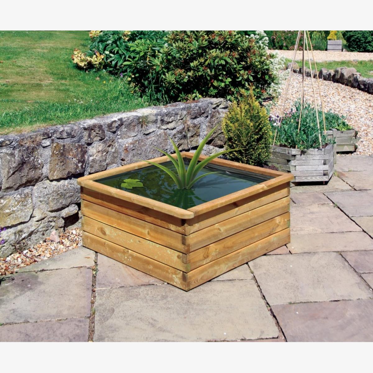 Water is one of the best ways to encourage butterflies, bees, birds, and other wildlife into your garden. With our easy to assemble Zest Square Garden Aquatic Planter, you can instantly create an impressive water feature suitable in any outdoor space. With room for aquatic plants and smaller pond life, the planter will look great in any garden or placed on a patio. A durable PVC liner is included, so you can set up straight away KEY FEATURES: Includes durable PVC liner Optional internal base High quality, pressure treated wood This product is made of material from well-managed, PEFC certified forests and controlled sources DIMENSIONS & WEIGHT: Sizes: W 0.9m x D 0.9m x H 0.45m Materials: Softwood & polyvinyl chloride liner Weight: 40 kg CARE & MAINTENANCE: As an easy care product made from pressure treated wood that protects against rot there is no need to apply any treatment within the first 6 months of receipt. Doing so will invalidate the warranty, as this will not allow enough time for excess moisture from the pressure treatment to dry out. However, after this period you may apply annual treatment to prolong the life and look of the product.
