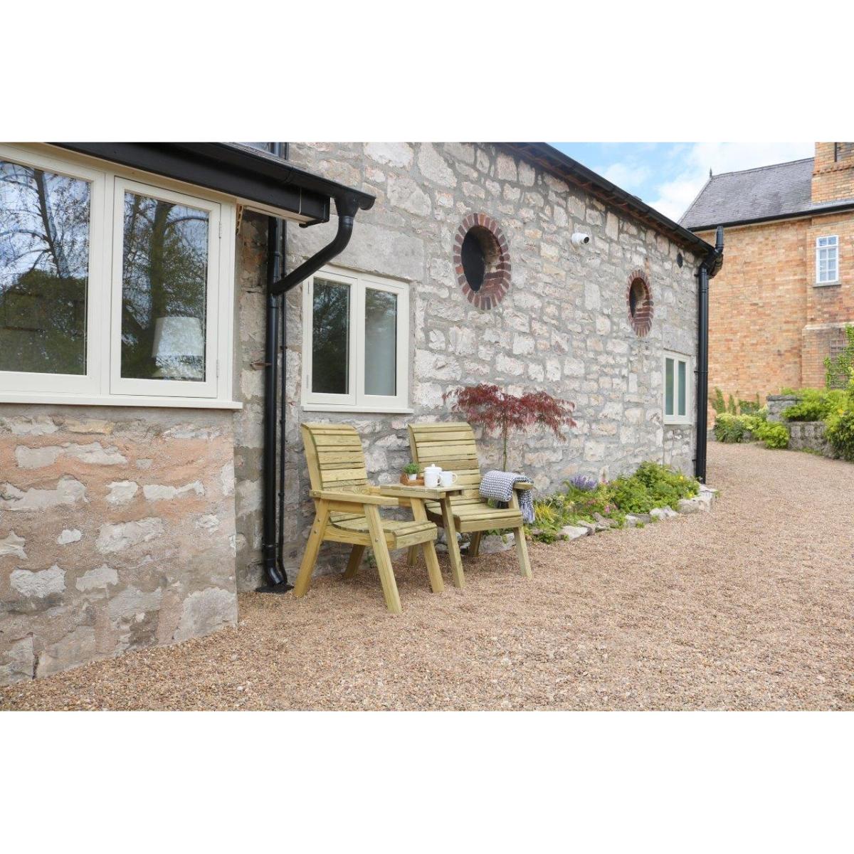 The Freya design presents a new design aesthetic and incorporates alternate width wooden slats cleverly spaced to make a very comfortable ergonomic seating shape. The extended high back improves comfort and support but also gives a sense of drama and presence to the outdoor dining experience. The encompassing style and presence of the Freya Dining Set offers the customer value for money through good design and premium appearance. All details of the product have been considered, particularly the width and length of the arm rests, which provide maximum arm support as well as allowing space to rest a glass with a modern and contemporary look. Part of Zest's new Freya range of garden furniture, the Freya 6 Seater Dining Set is designed with fewer components for simple assembly using bolts. Made from sustainable slow grown soft wood from responsibly managed forests, its pressure treated and comes with a 10 year guarantee against rot. KEY FEATURES: Extended high back for maximum comfort and support Generous arm support width allows space to rest a glass Part of the Easy Build range Pressure treated wood 10 year guarantee against rot This product is made of material from well-managed, PEFC certified forests and controlled sources DIMENSIONS & WEIGHT: Sizes: 1.9m wide x 0.95m deep x 1.06m high Materials: Softwood Weight: 31.9 kg CARE & MAINTENANCE: As an easy care product made from pressure treated wood that protects against rot there is no need to apply any treatment within the first 6 months of receipt. Doing so will invalidate the warranty, as this will not allow enough time for excess moisture from the pressure treatment to dry out. However, after this period you may apply annual treatment to prolong the life and look of the product.