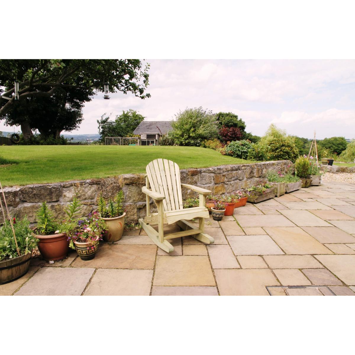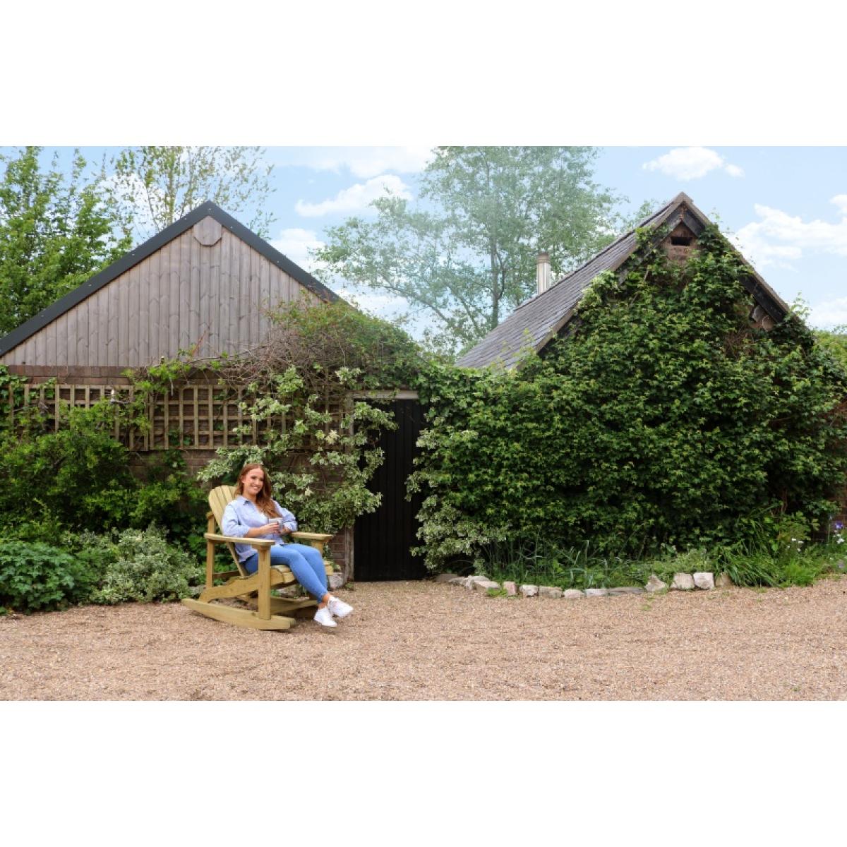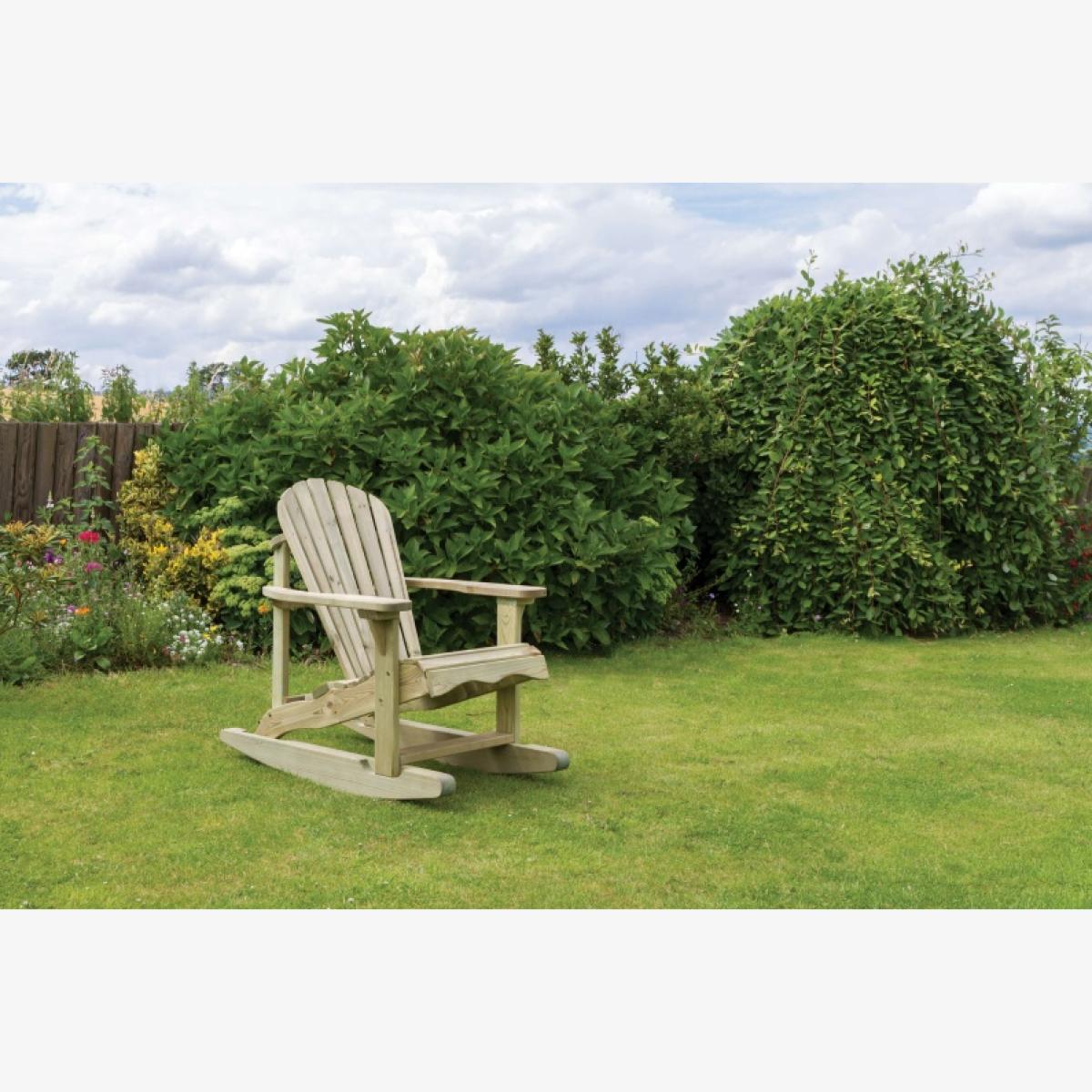 Unwind and relax in the stylish Lily Relax Rocking Chair. It's designed to support your posture with its angled back, strong armrests and low seating. Simply place in your favourite garden spot and enjoy the outside. The Zest Garden Lily Relax Rocking Chair is pressure treated and guaranteed against rot for 10 years, so you know this garden product is made to last. For ultimate relaxation, why not pair with the Lily Relax Foot Stool. Other matching items in our Lily Relax range are also available. KEY FEATURES: Low seat and with fan-shaped angled back Perfectly matches Lily Relax side table and foot stool 10 year guarantee against rot High quality, pressure treated wood This product is made of material from well-managed, FSC-certified forests and controlled sources DIMENSIONS & WEIGHTS: Sizes W72cm x D 114cm x H 99cm Materials: Softwood Weight: 22 kg CARE & MAINTENANCE: As an easy care product made from pressure treated wood that protects against rot there is no need to apply any treatment within the first 6 months of receipt. Doing so will invalidate the warranty, as this will not allow enough time for excess moisture from the pressure treatment to dry out. However, after this period you may apply annual treatment to prolong the life and look of the product.