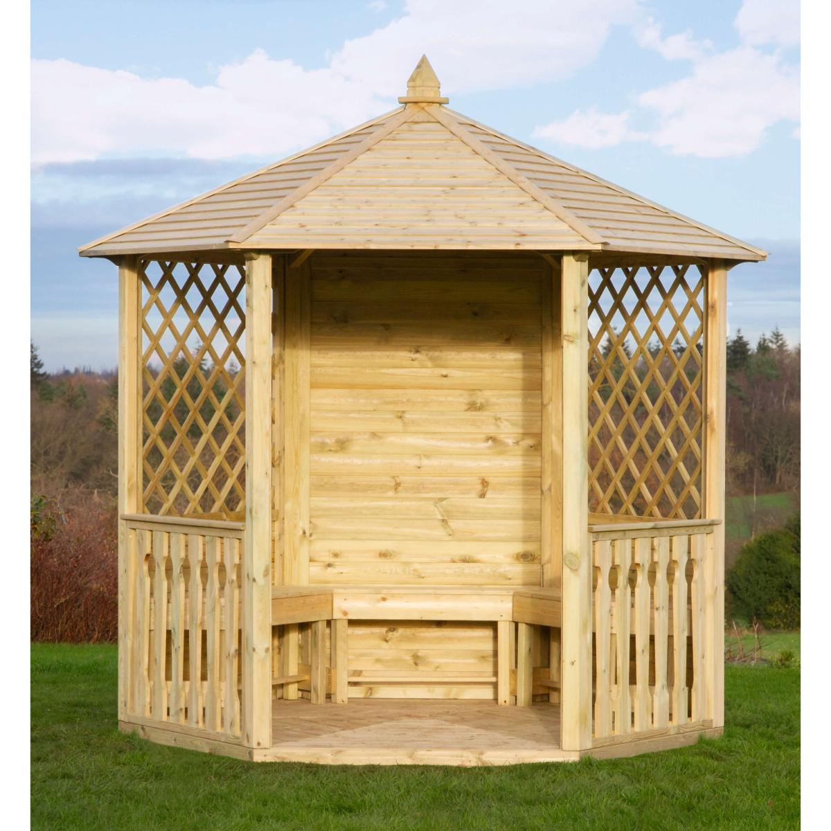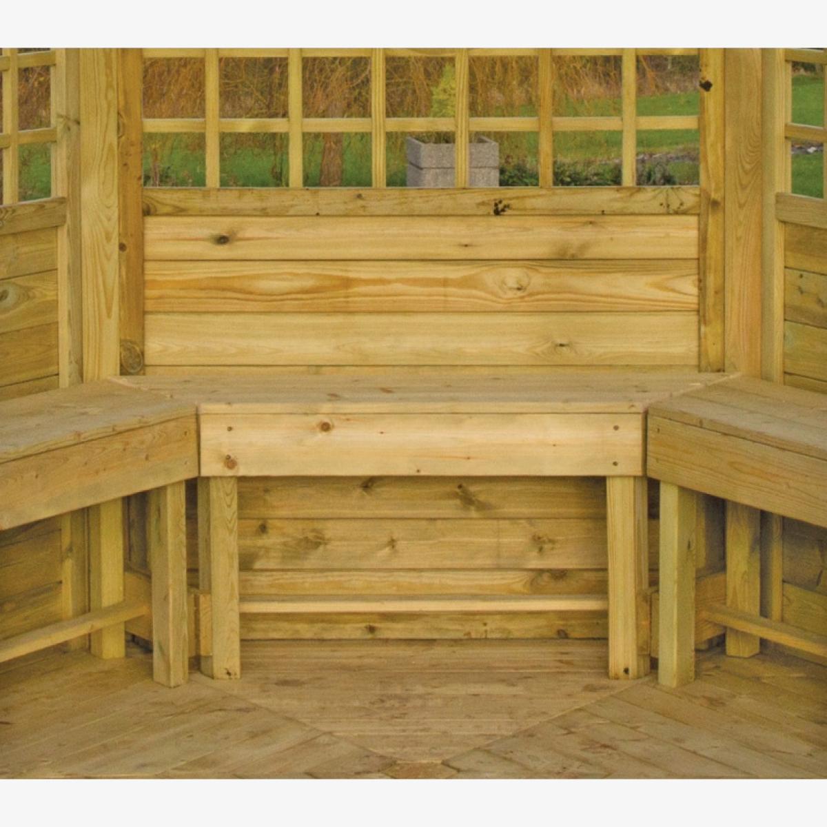 Available as an optional extra, this Set of 3 Gazebo Benches is designed to perfectly fit our Tatton Gazebo, Moreton Gazebo and Clifton Gazebo. Transforming the space into a cosy retreat, this set is made from sustainable PEFC timber and is guaranteed against rot for 10 years. KEY FEATURES: Perfectly fits our Tatton Gazebo, Moreton Gazebo and Clifton Gazebo Pressure treated wood that will stand the test of time 10 year guarantee against rot This product is made of material from well-managed, PEFC certified forests and controlled sources DIMENSIONS & WEIGHT: Sizes: 1.1m (W) x 0.3m (H) x 0.2m (D) Individual bench: 1.08m (W) x 0.285m (D) x 0.42m (H) Inner width: 0.75m Materials: Softwood Weight: 20 kg CARE & MAINTENANCE: As an easy care product made from pressure treated wood that protects against rot there is no need to apply any treatment within the first 6 months of receipt. Doing so will invalidate the warranty, as this will not allow enough time for excess moisture from the pressure treatment to dry out. However, after this period you may apply annual treatment to prolong the life and look of the product.