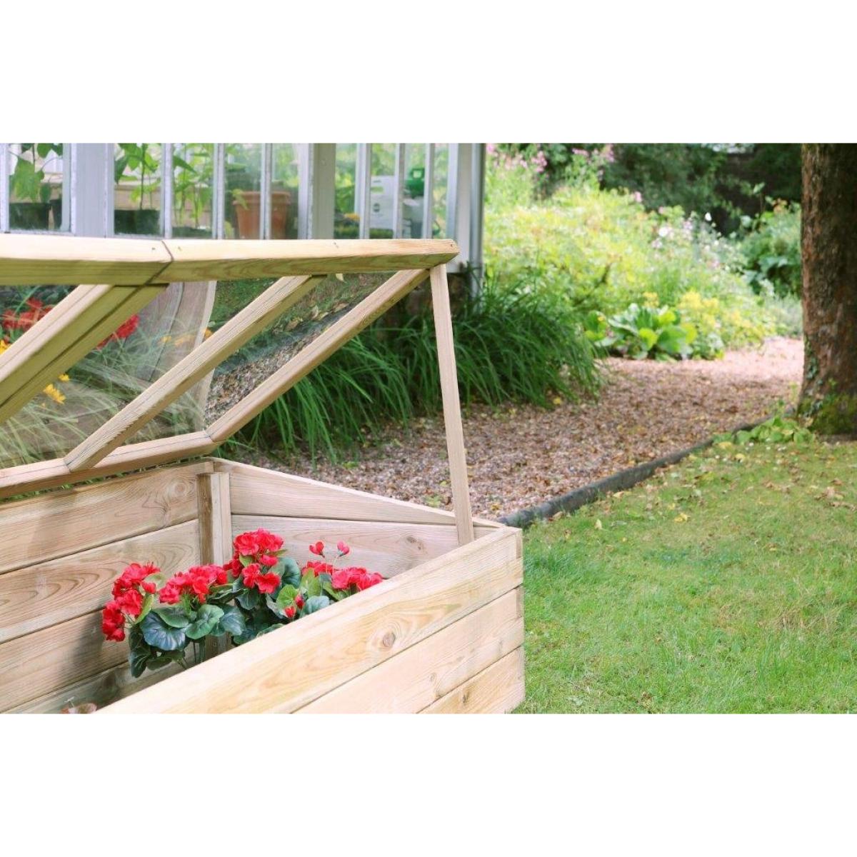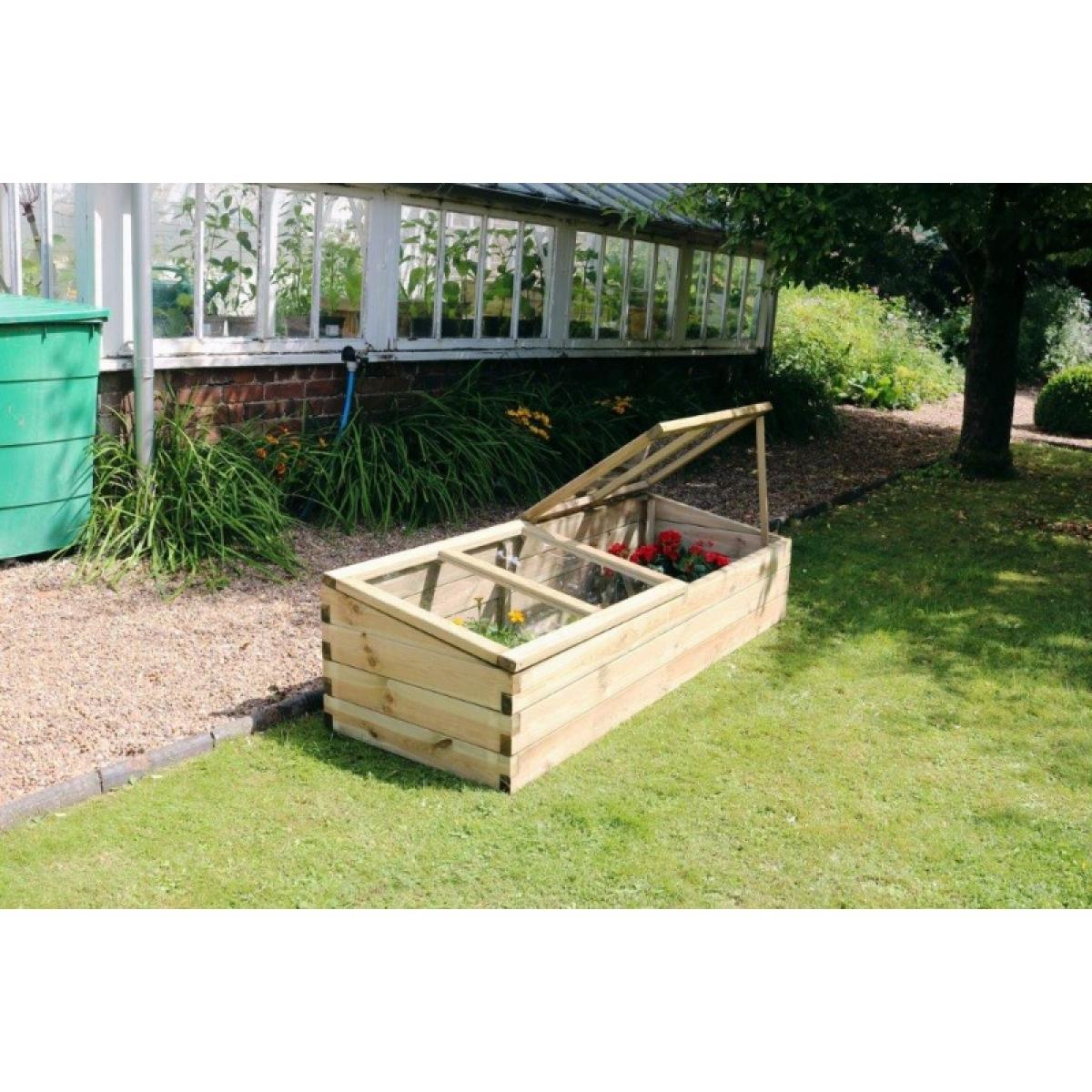Protect your plants and crops against frost over the winter months with the Zest Garden Sleeper Wooden Cold Frame. The perfect environment for the growth of seedlings that you can move to larger spaces when ready. A Large Cold Frame is also available. KEY FEATURES: Two hinged windows Tough acrylic glazing High quality, pressure treated wood This product is made of material from well-managed, PEFC certified forests and controlled sources DIMENSIONS & WEIGHT: Sizes: W 1.70m x D 0.60m x H 0.43/0.32m Materials: Softwood, Acrylic Glazing, Galvanised Hinges Weight: 33 kg CARE & MAINTENANCE: As an easy care product made from pressure treated wood that protects against rot there is no need to apply any treatment within the first 6 months of receipt. Doing so will invalidate the warranty, as this will not allow enough time for excess moisture from the pressure treatment to dry out. However, after this period you may apply annual treatment to prolong the life and look of the product.